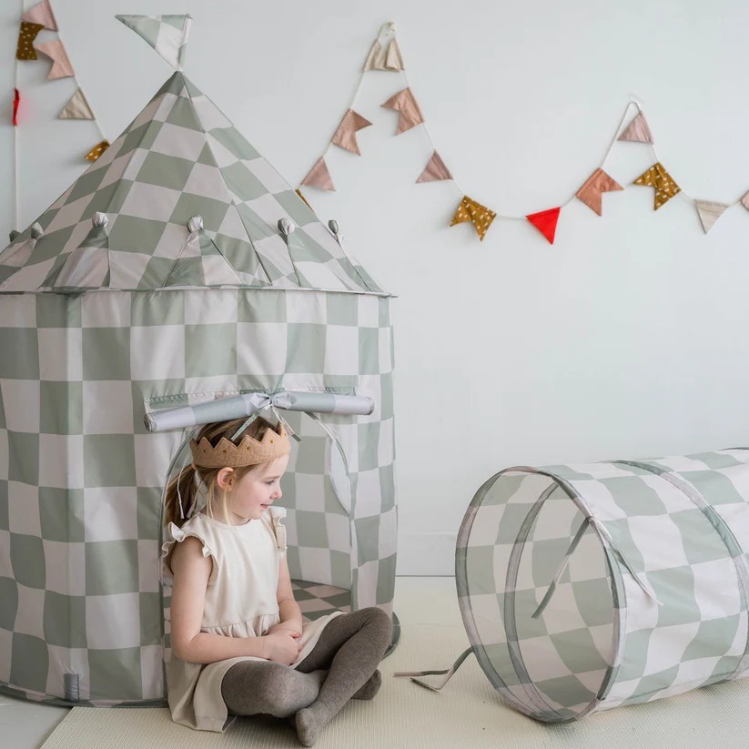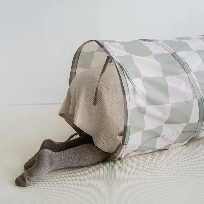 3 SPROUTS Dětský Tunel Recycled Checkerboard Green
