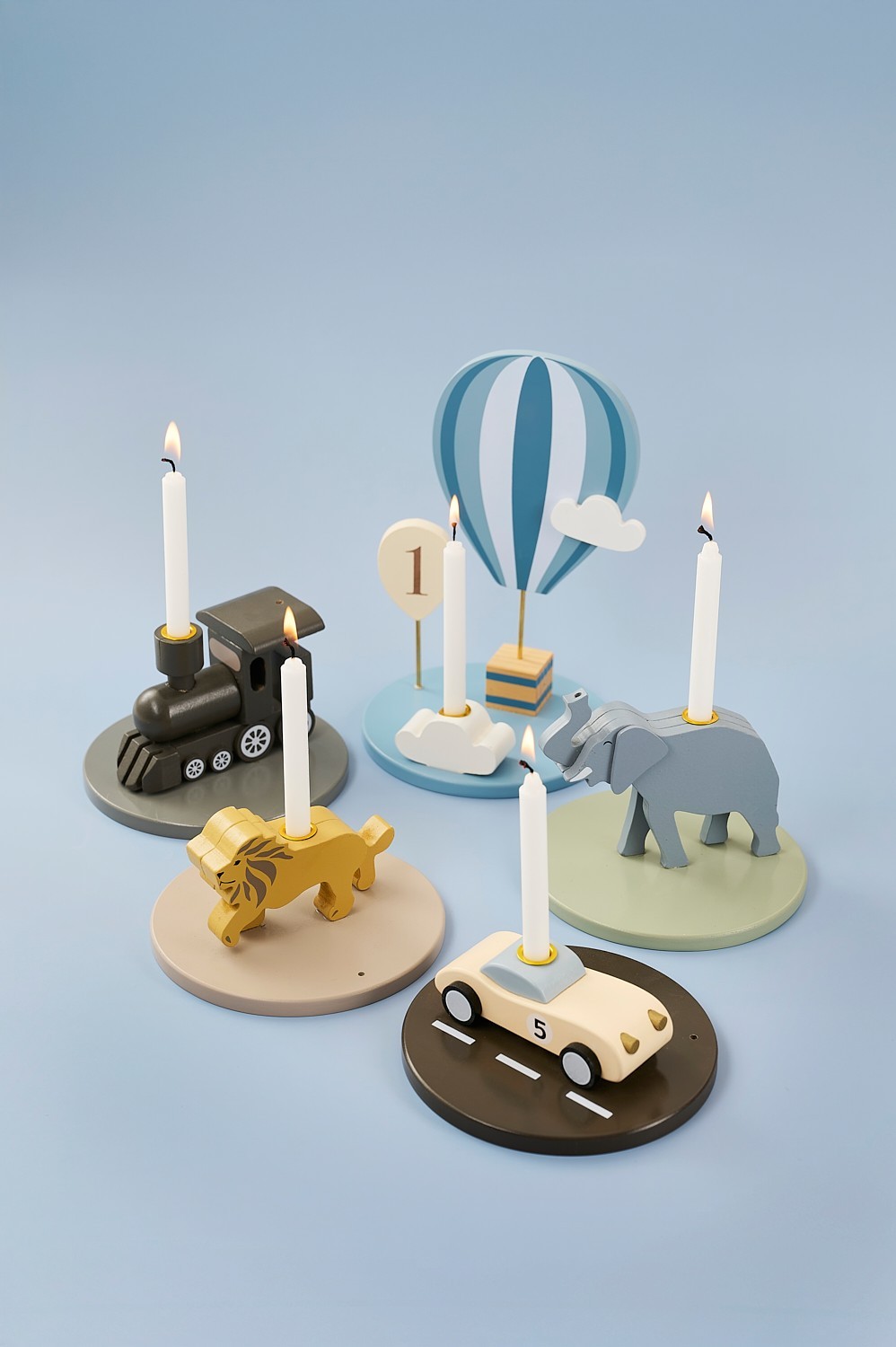 • Dřevěný narozeninový vláček složený z pěti svícnů – lze používat společně jako vláček nebo jednotlivě
