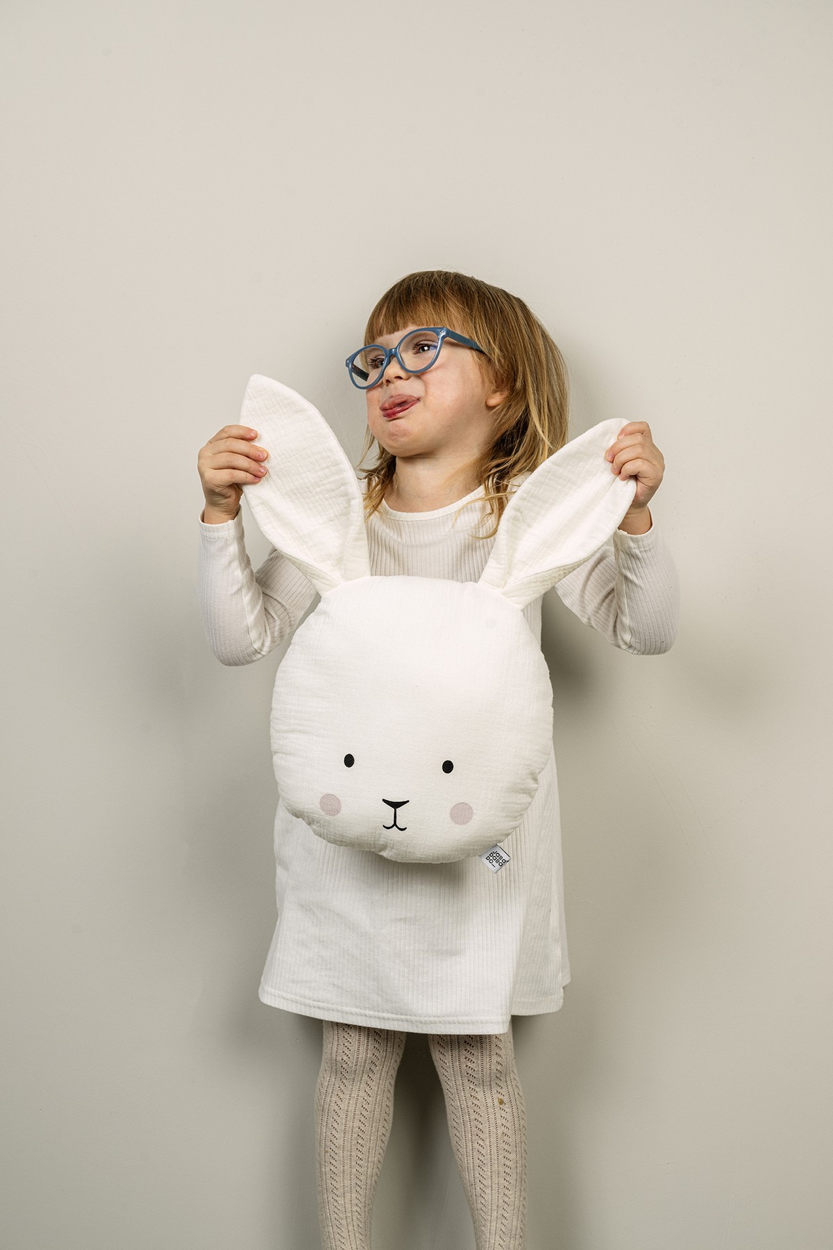 • Roztomilý polštář ve tvaru zajíčka, ručně vyrobený s láskou