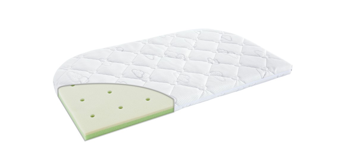 Fotografie je pouze ilustrační. Matrace do přistýlky má na jedné dlouhé straně zaoblené rohy.