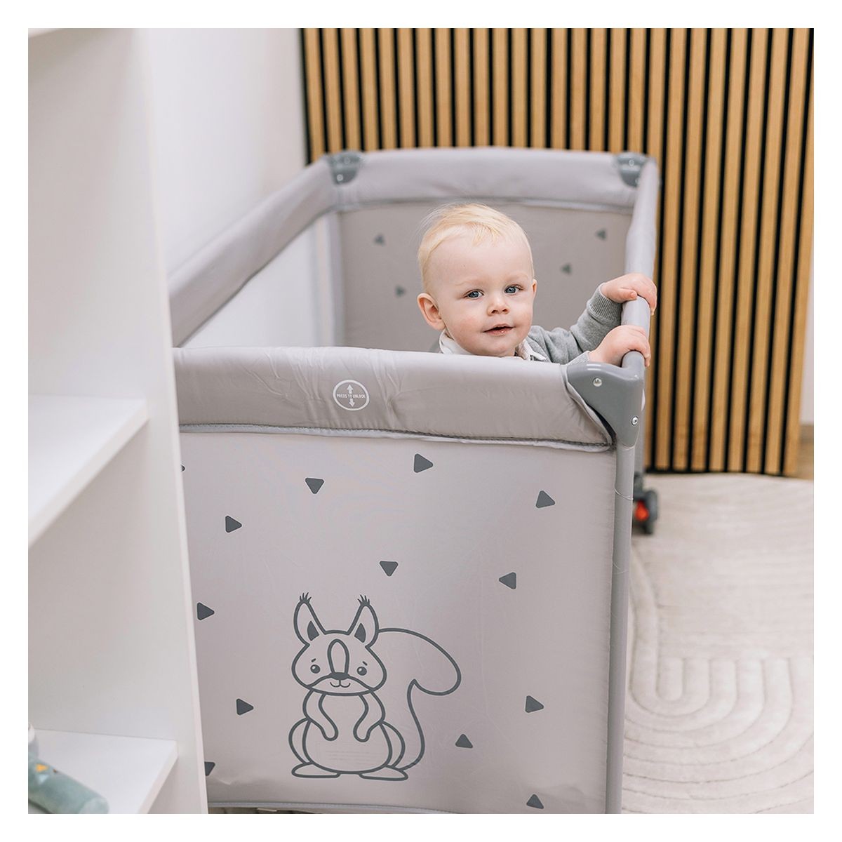 • boční síťované panely pro optimální proudění vzduchu a lepší dohled nad dítětem