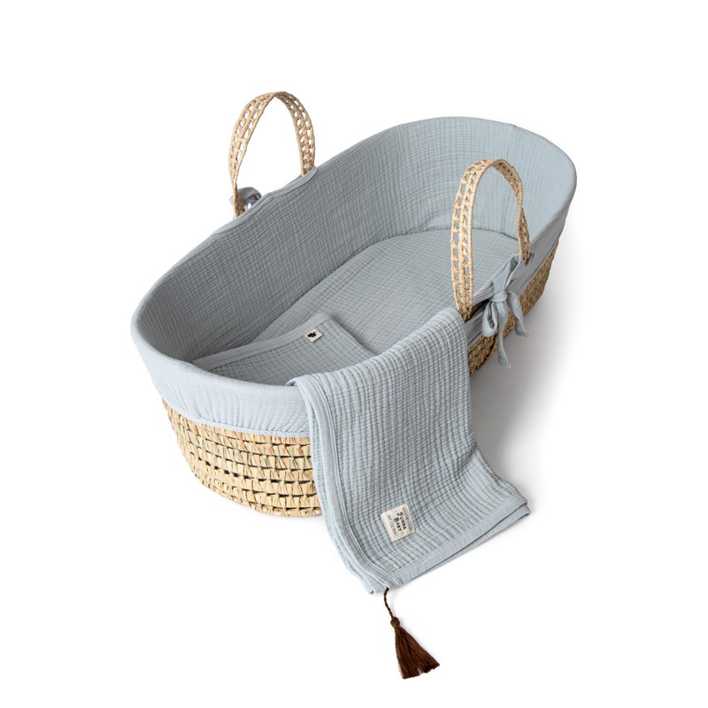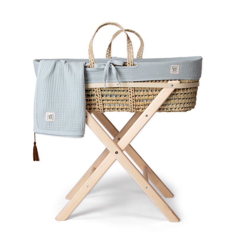 set obsahuje: Mojžíšův koš, stojan, potah koše, prostěradlo, matraci a deku