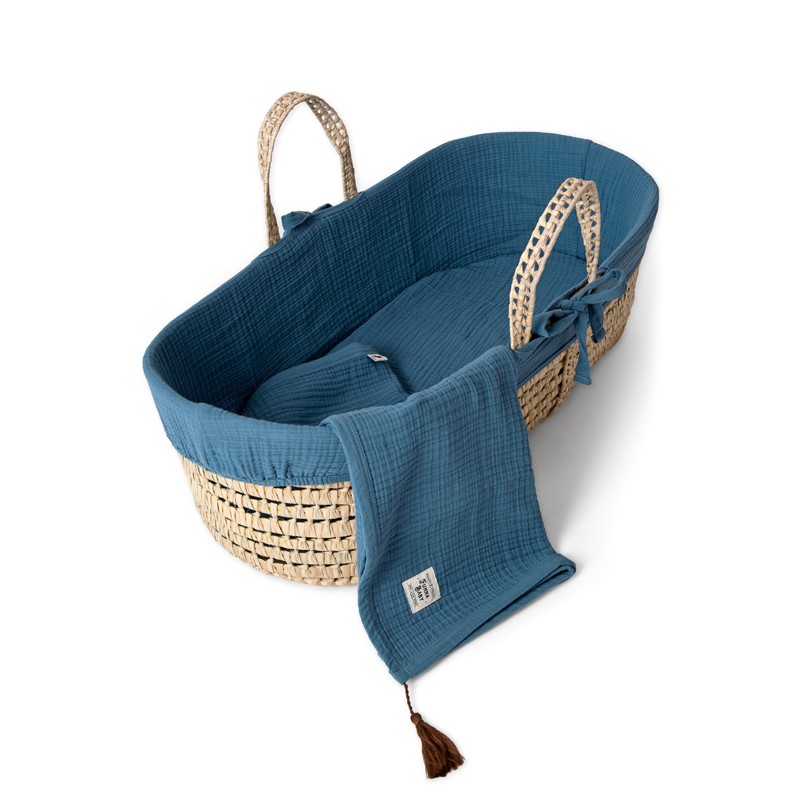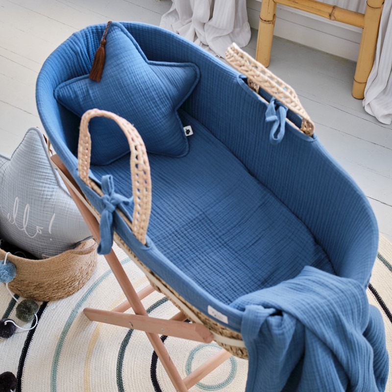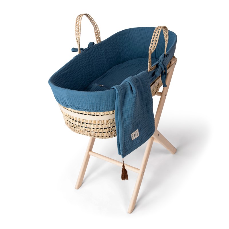 set obsahuje: Mojžíšův koš, stojan, potah koše, prostěradlo, matraci a deku