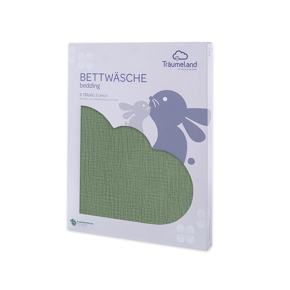 TRÄUMELAND povlečení Musselin 100/135 + 40/60 Salbei Grün