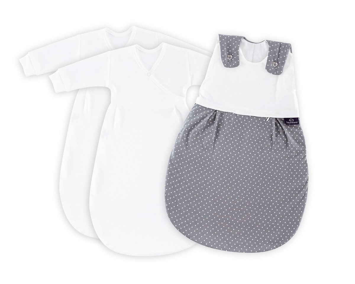 TRÄUMELAND Spací pytel Liebmich 3dílný set Pünktchen grau 56/62