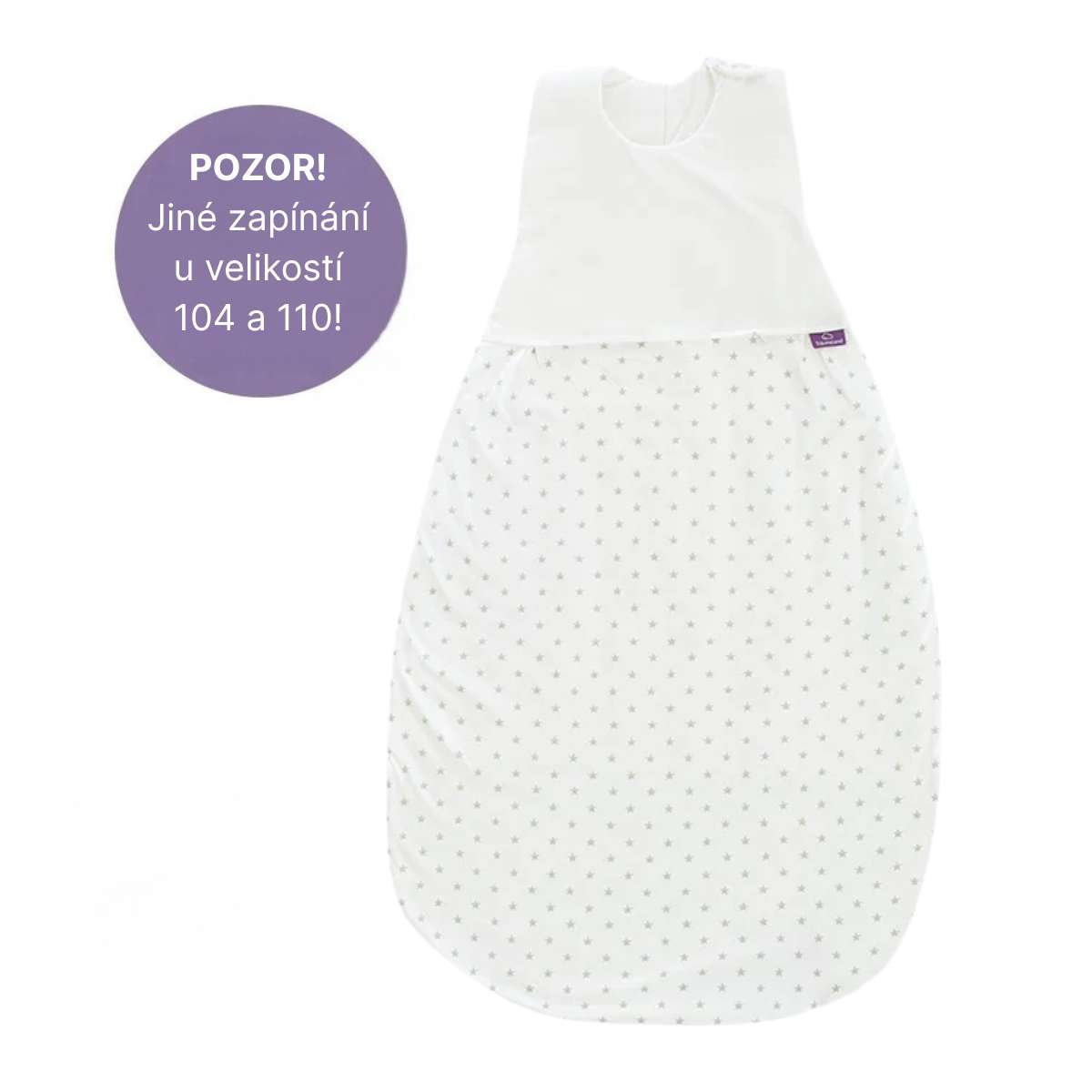• Velikosti 104 a 110 – již nejsou rostoucí; druky jsou zde jen na jedné straně a slouží pro pohodlné nasazování spacího pytle.