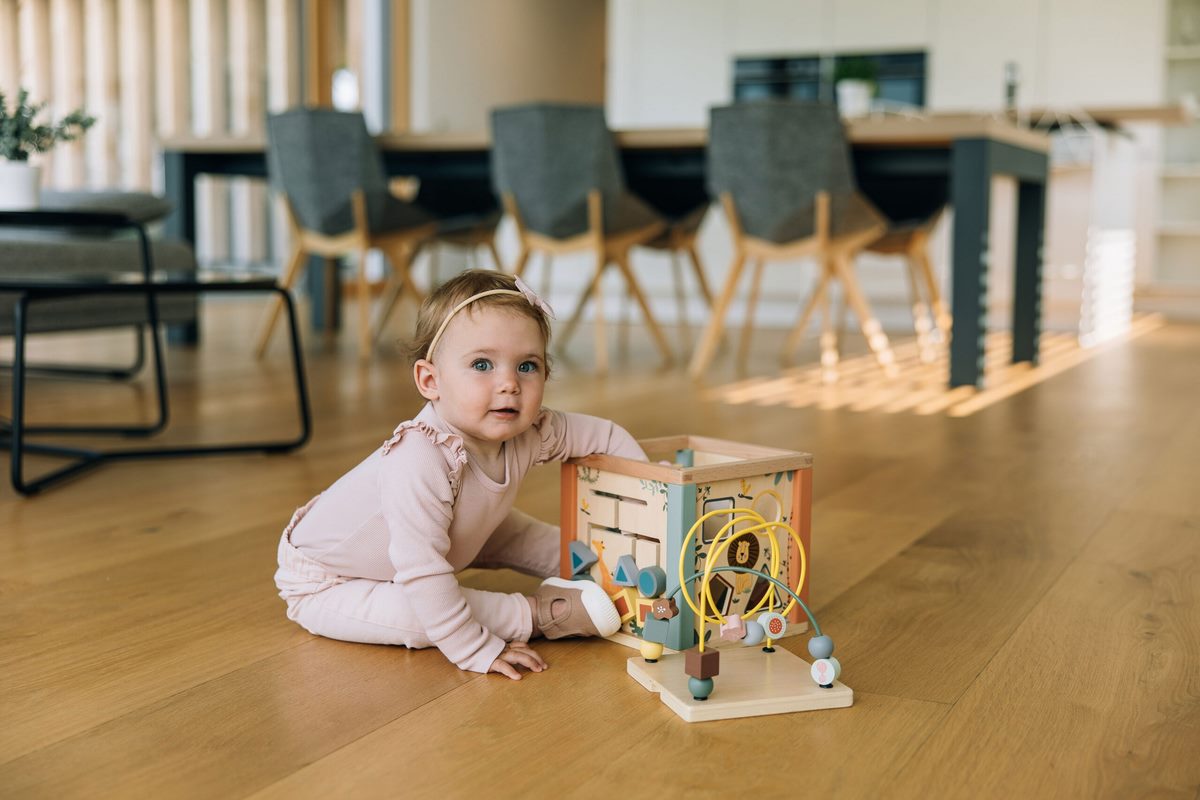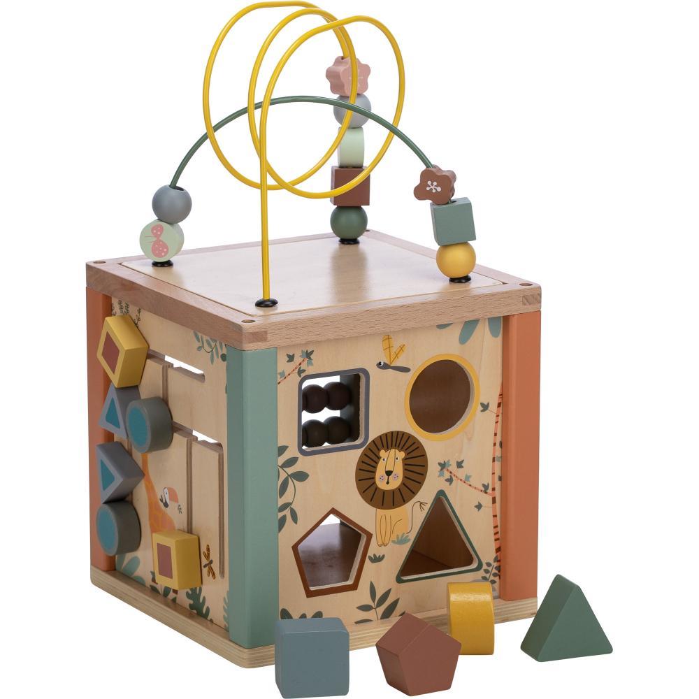 velká didaktická dřevěná kostka podporuje jemnou motoriku a logické myšlení dítěte