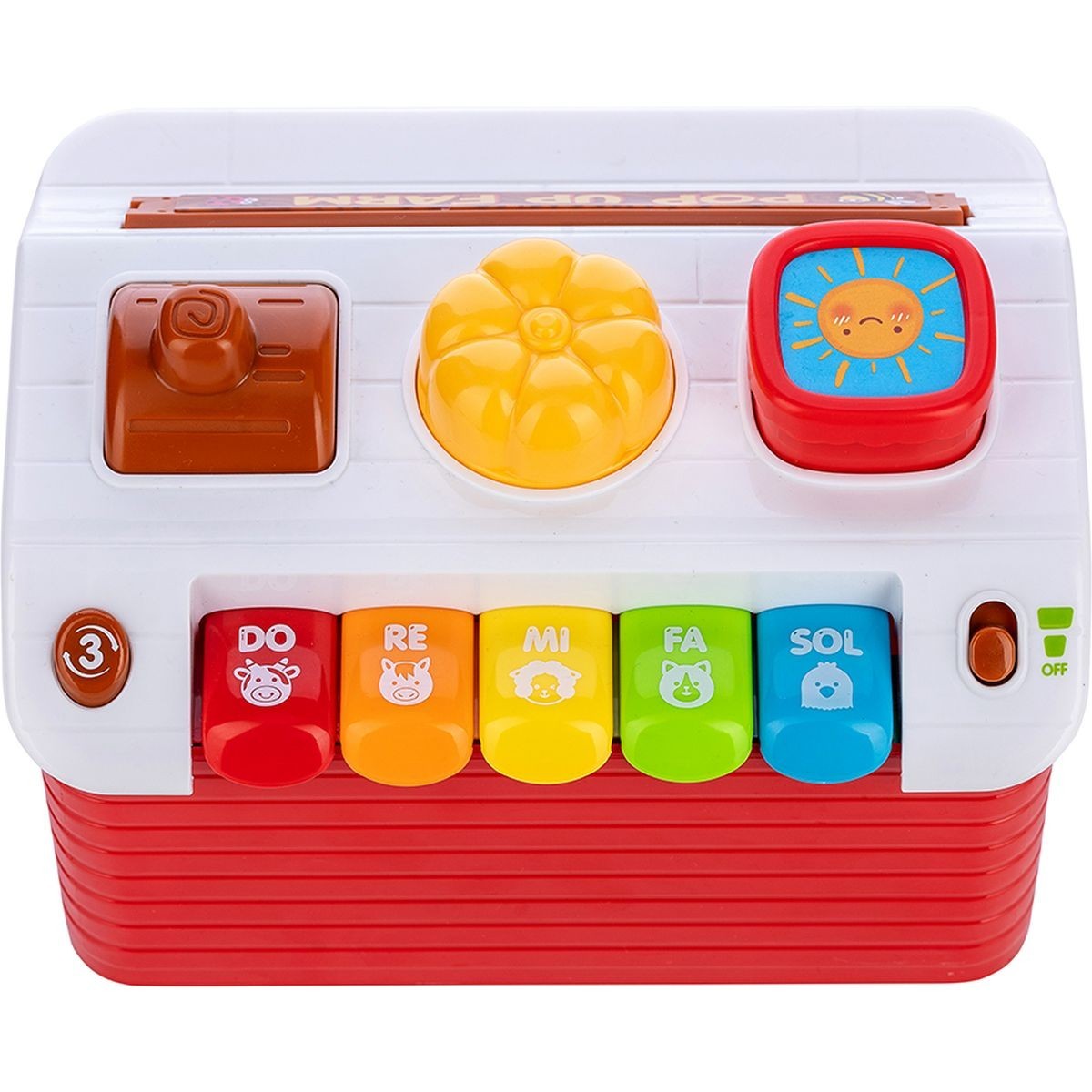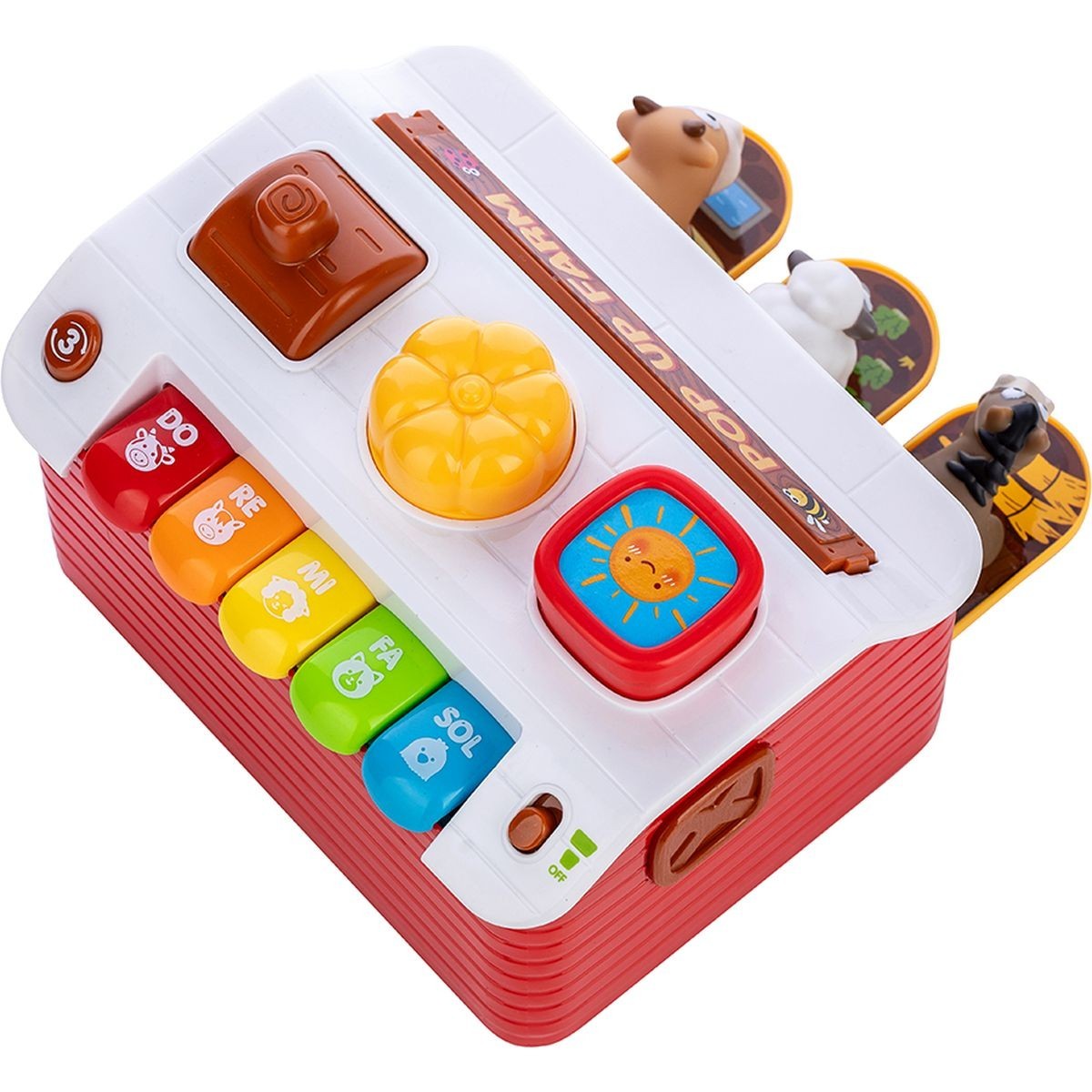 • Interaktivní zvířátka – 3 zvířátka vyskakují ze stodoly při stisknutí, otočení nebo posunutí ovládacích prvků