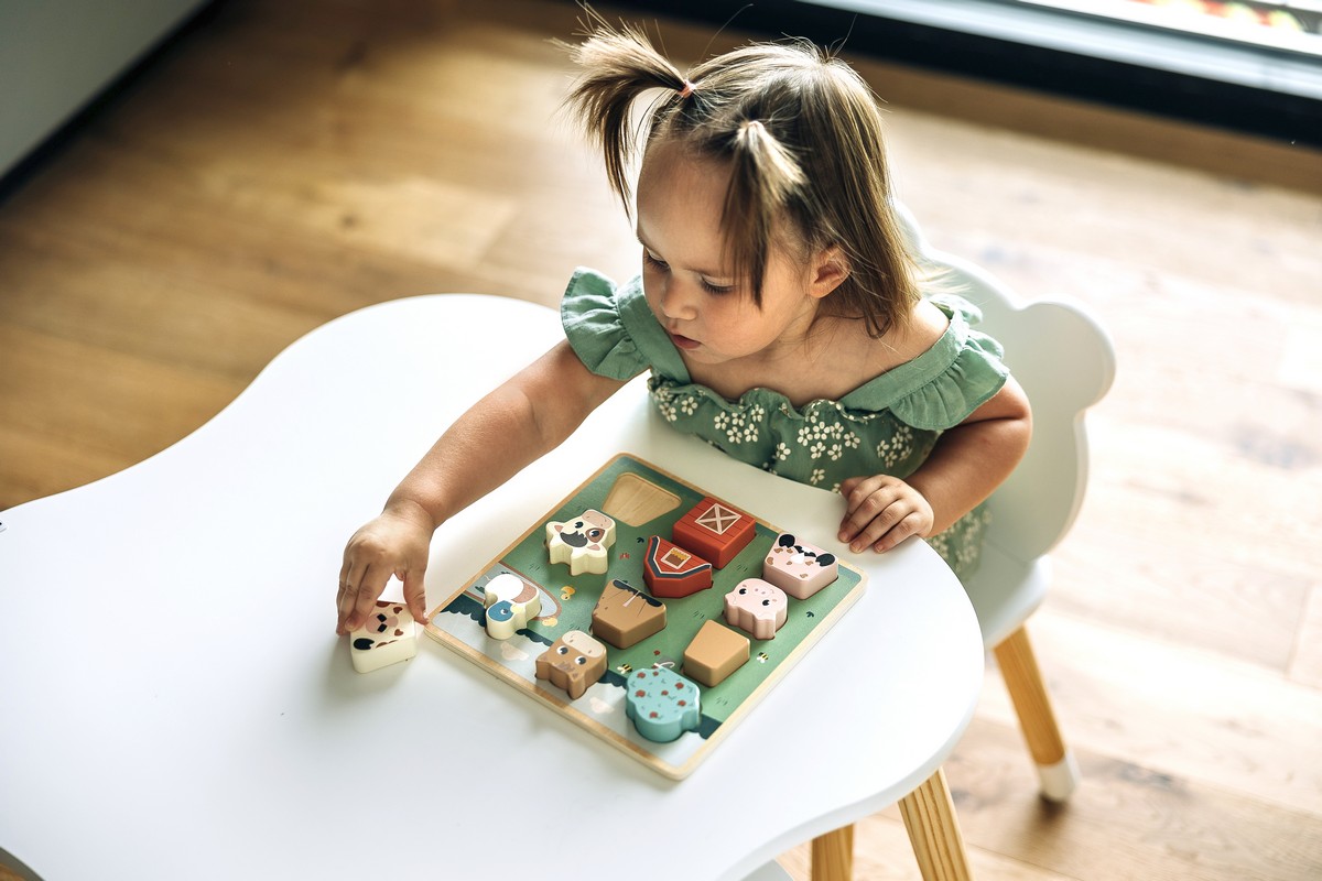 • dřevěné puzzle s motivem farmy pro zábavné učení a rozvoj představivosti