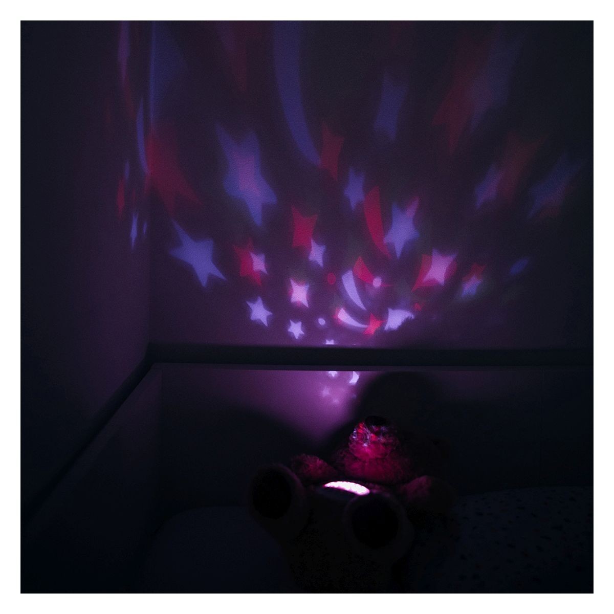 UPOZORNĚNÍ: Používejte pouze pod dohledem dospělé osoby. Obsahuje elektronické součásti – chraňte před vodou. Před praním vyjměte hudební modul. Používejte pouze 3× AA baterie (nejsou součástí). Přečtěte si návod.