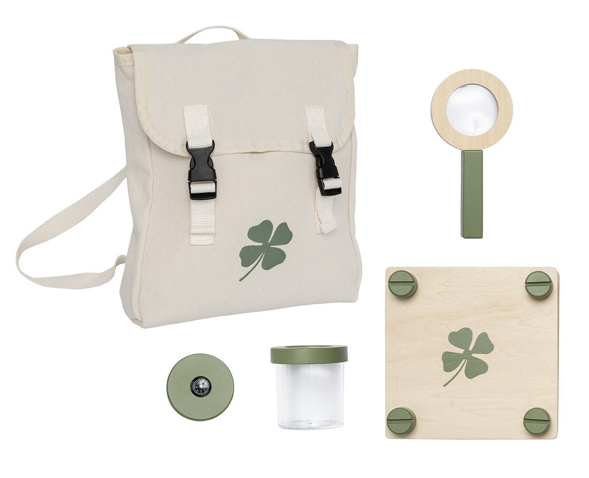 • Obsah balení: batůžek, lupa, kelímek na hmyz, kapesní lupa (lupa s okem), kompas, pozorovací miska