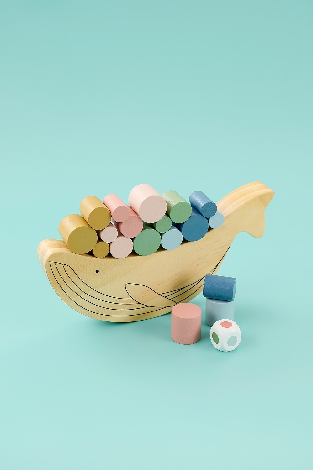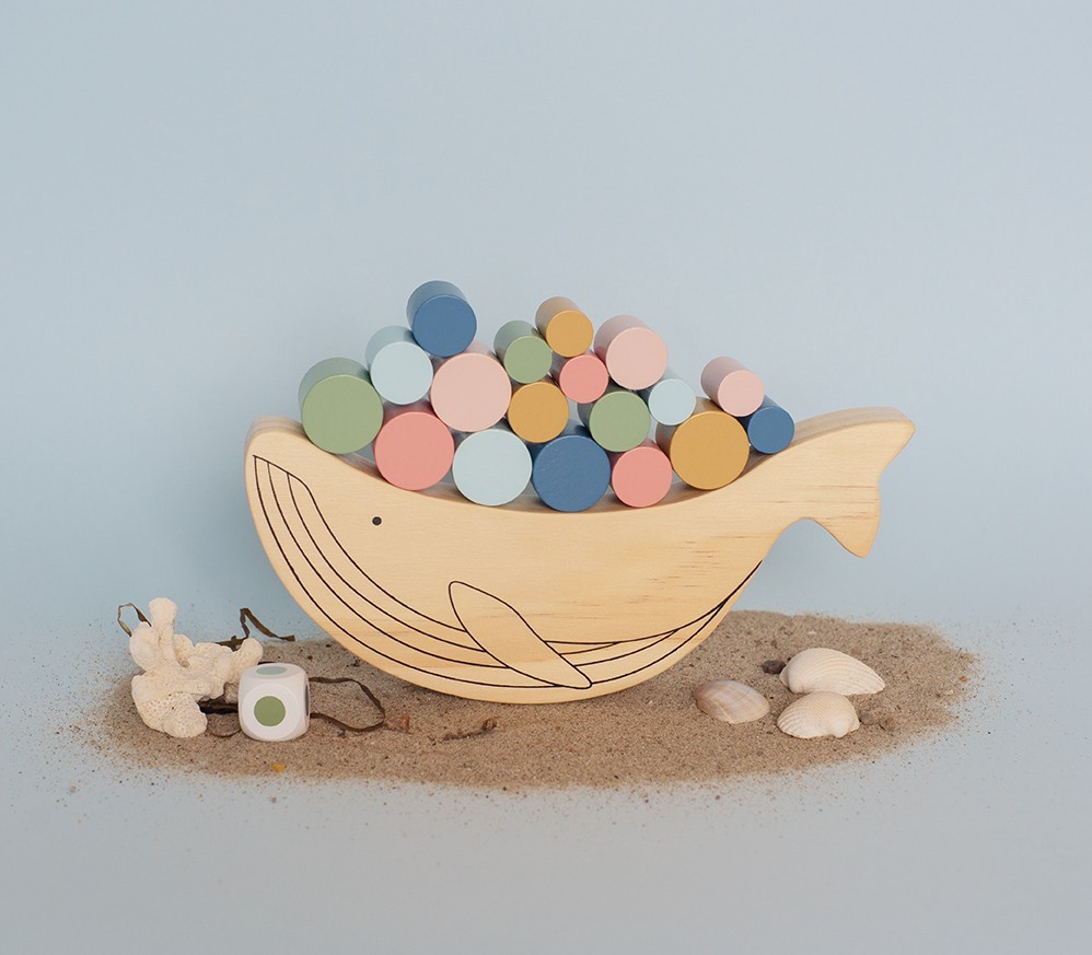 • Obsah balení: velryba, hrací kostka, 18 dřevěných dílků