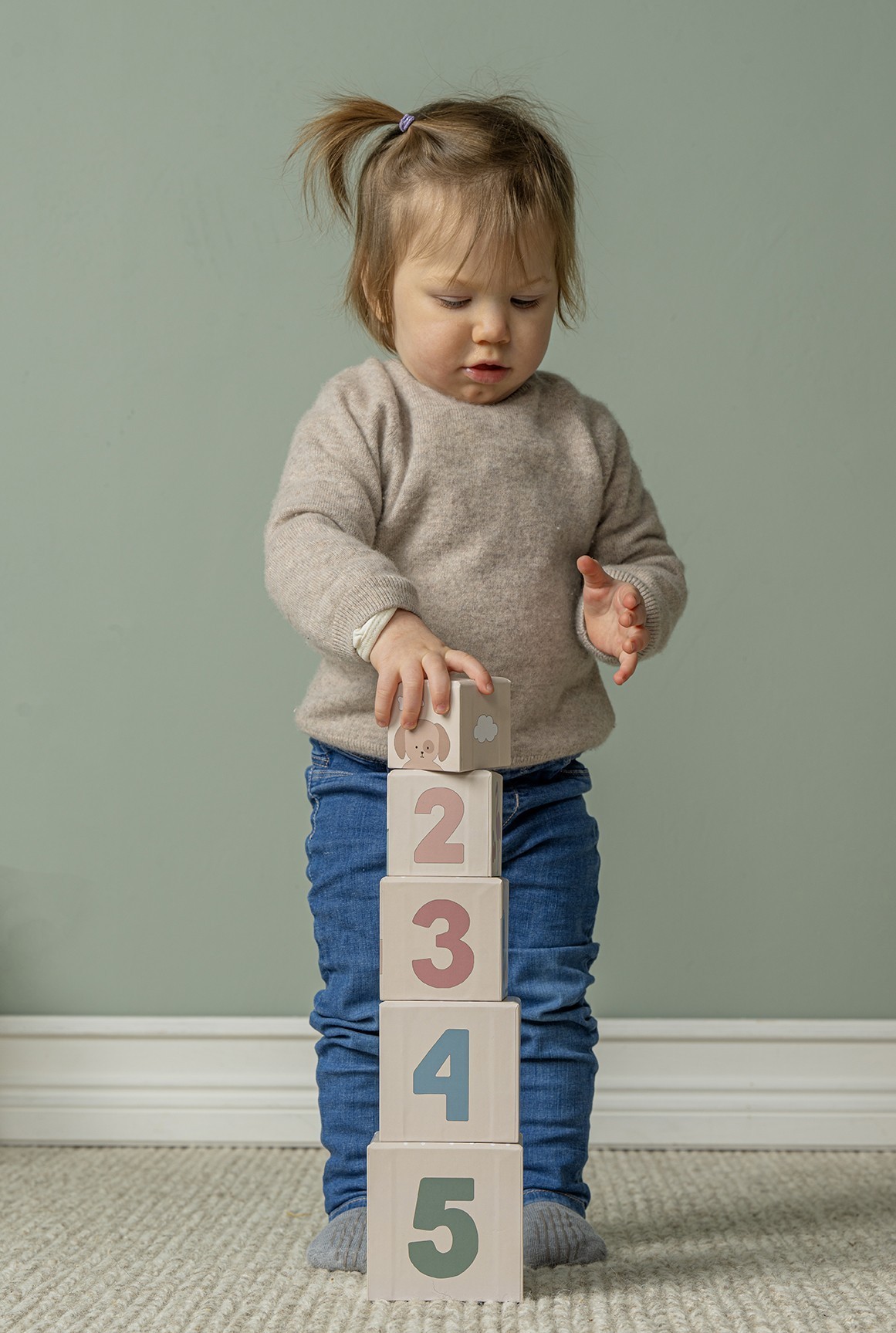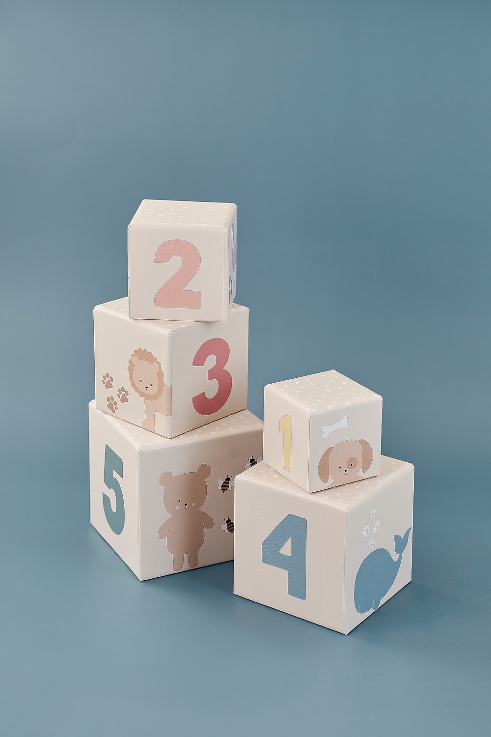 Stohovací kostky: zábavná věž učí dítě udržovat rovnováhu, rozvíjí jemnou motoriku a základní matematické dovednosti (velikost, pořadí, porovnávání)