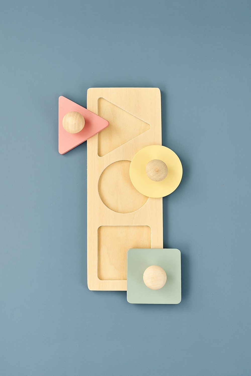Puzzle s tvary: barevný geometrický design usnadňuje poznávání tvarů a barev, rozvíjí jemnou motoriku a vizuální vnímání, velké dřevěné úchyty jsou vhodné pro malé ruce