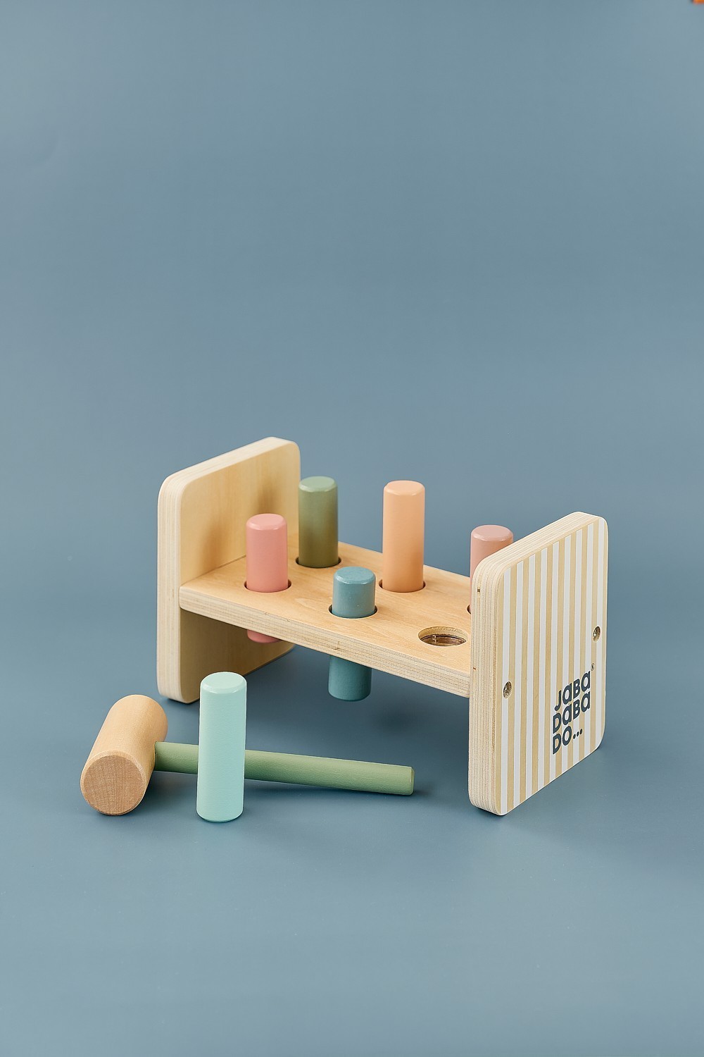 Dřevěný kladívkový hřebík: rozvíjí koordinaci ruky a oka, jemnou motoriku, kreativní hru a rozpoznávání barev