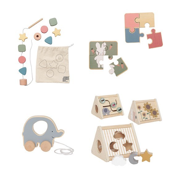Sada obsahuje čtyři pečlivě vybrané hračky pro zábavnou a rozvojovou hru