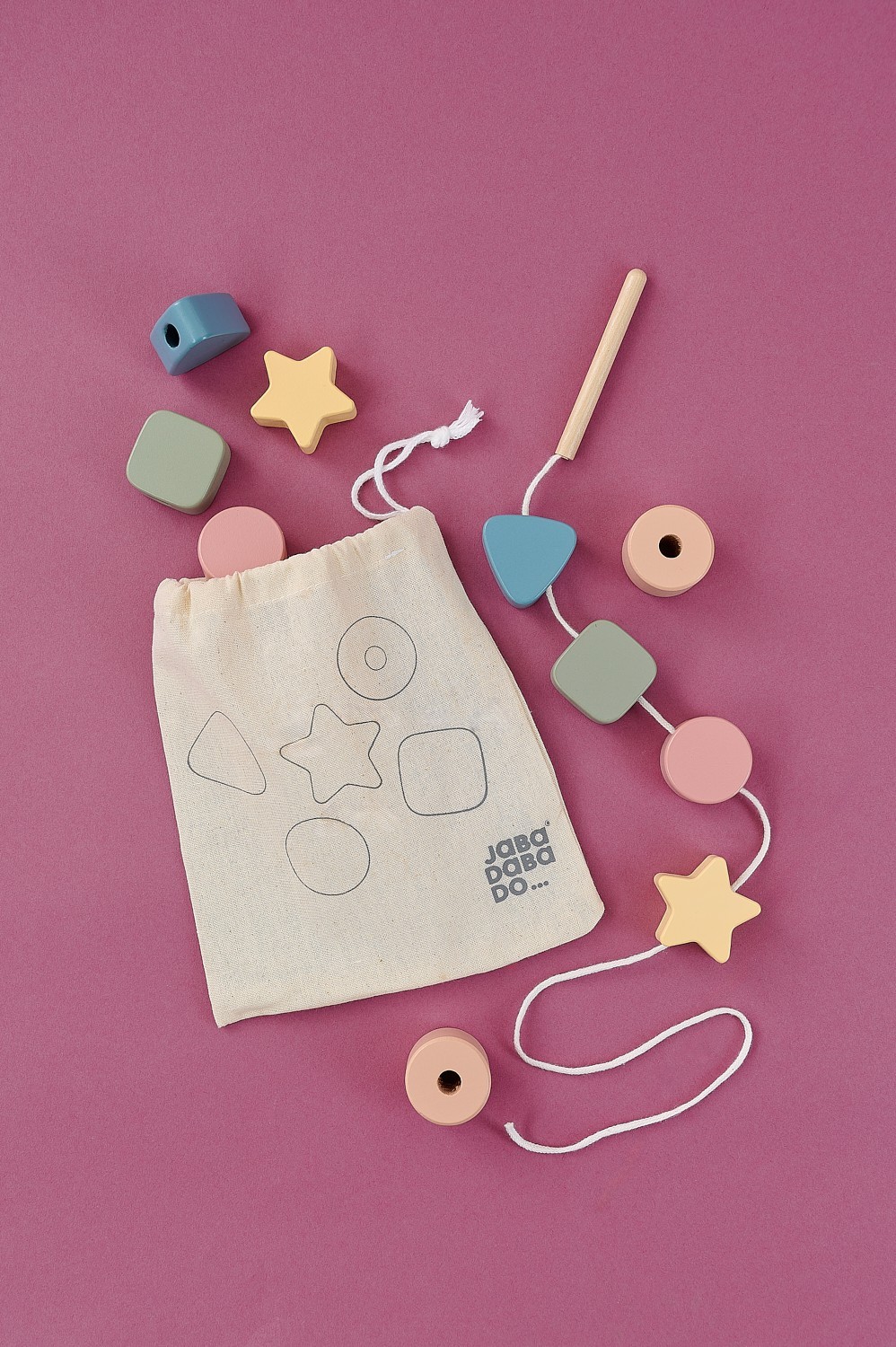 Navlékací korálky: dřevěné korálky na šňůrce podporují jemnou motoriku, obratnost a koordinaci ruky a oka, děti se učí rozpoznávat tvary a barvy a rozvíjí kreativitu a umělecké schopnosti