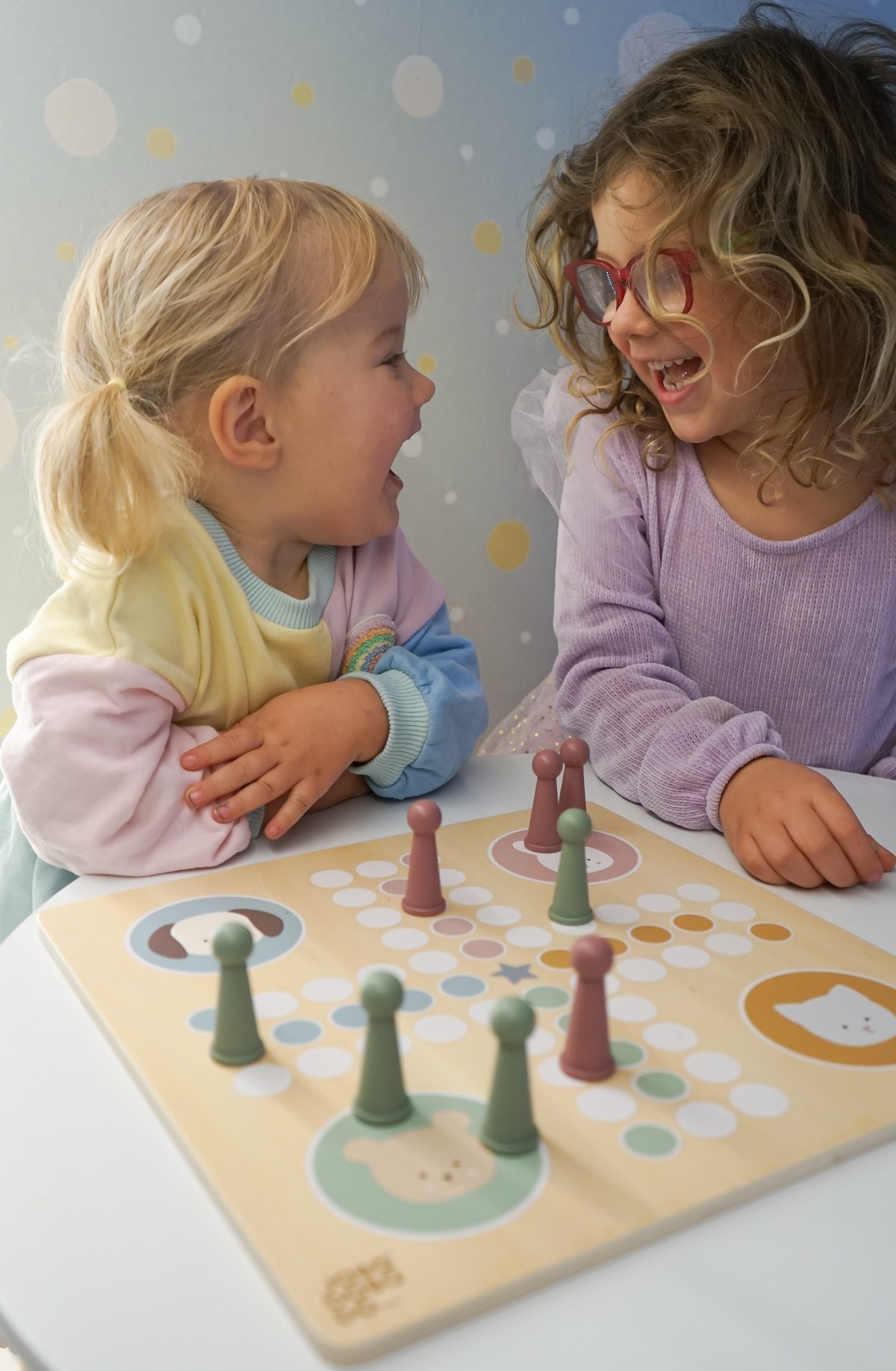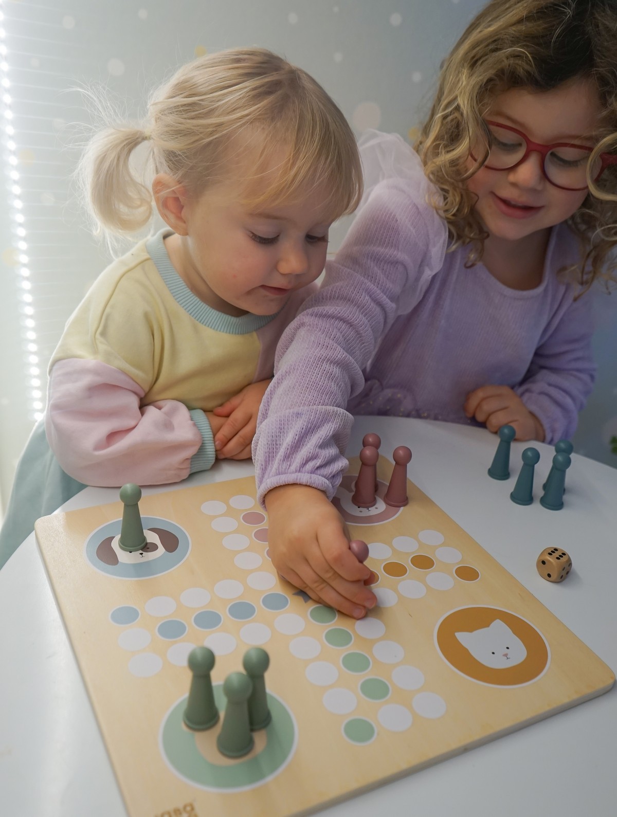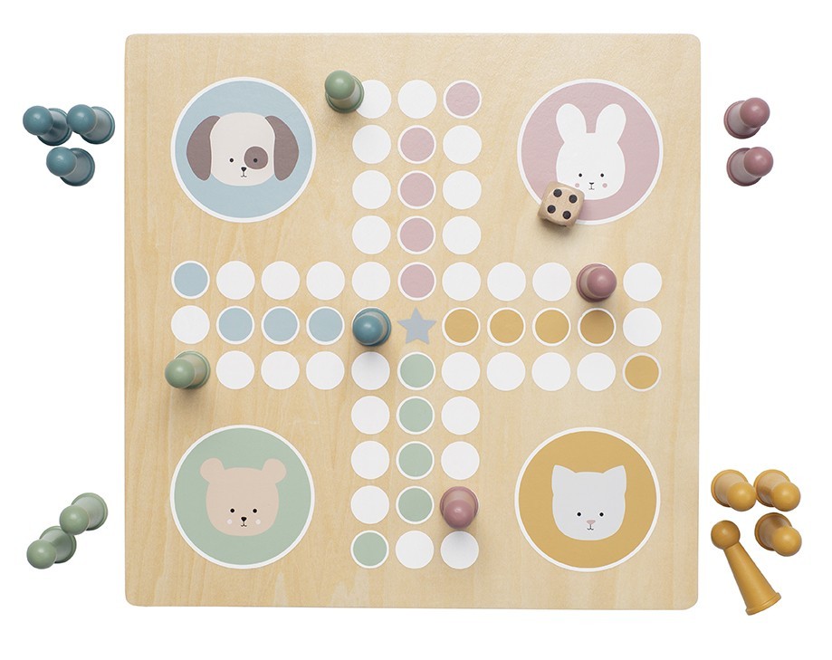 • Klasická desková hra pro 2–4 hráče s oblíbenými postavičkami Teddyho, Zajíčka, Pejska a Koťátka