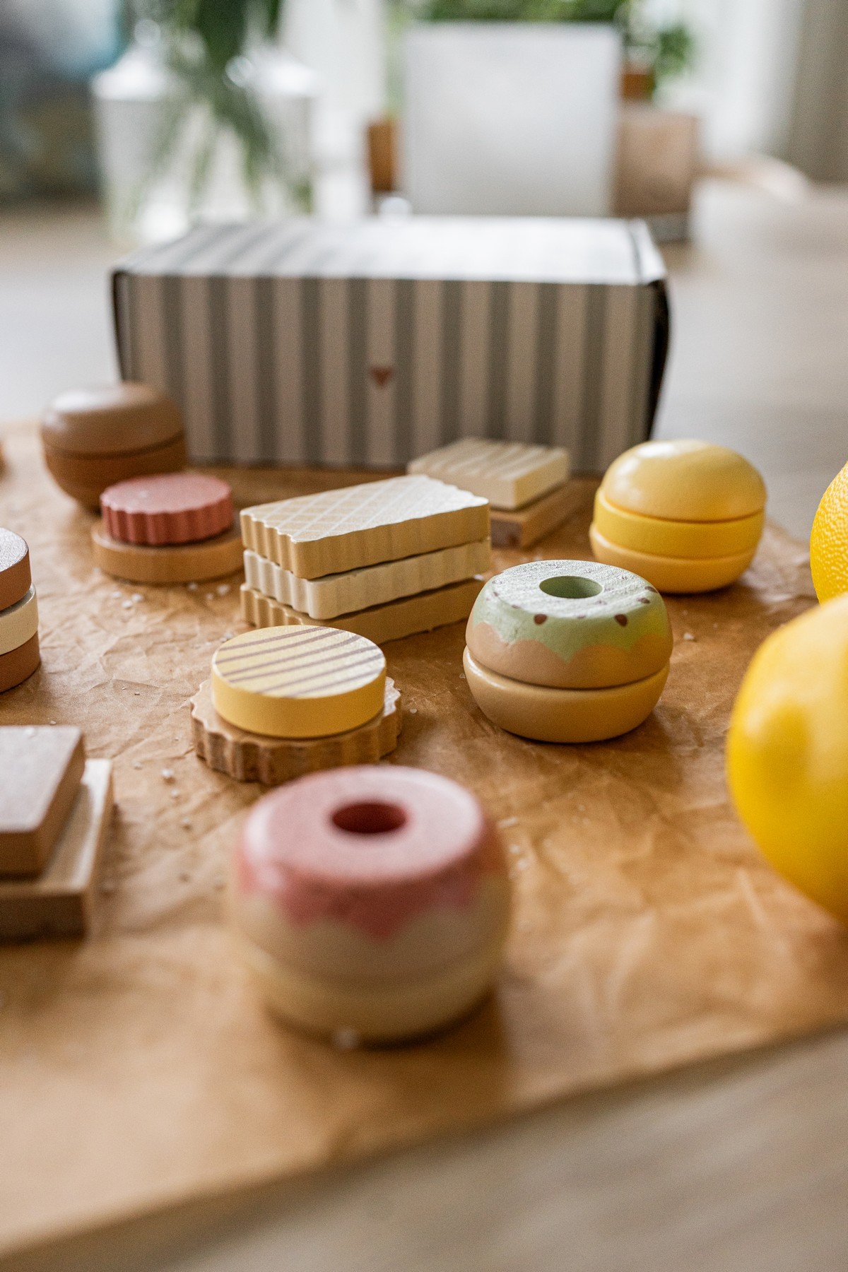 • Krásná sada dřevěných sušenek pro hravé posezení s přáteli