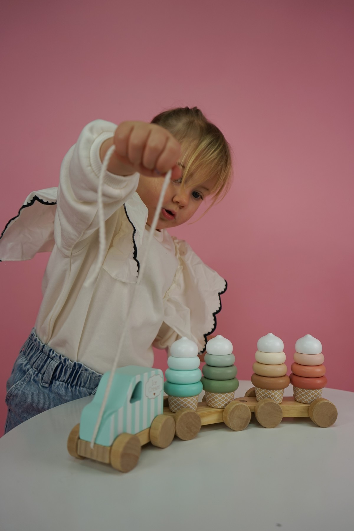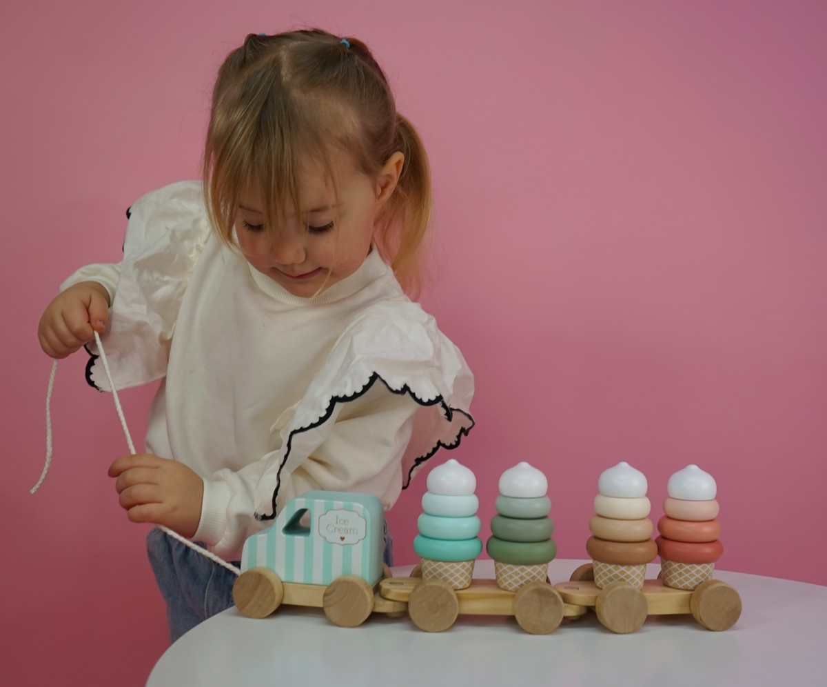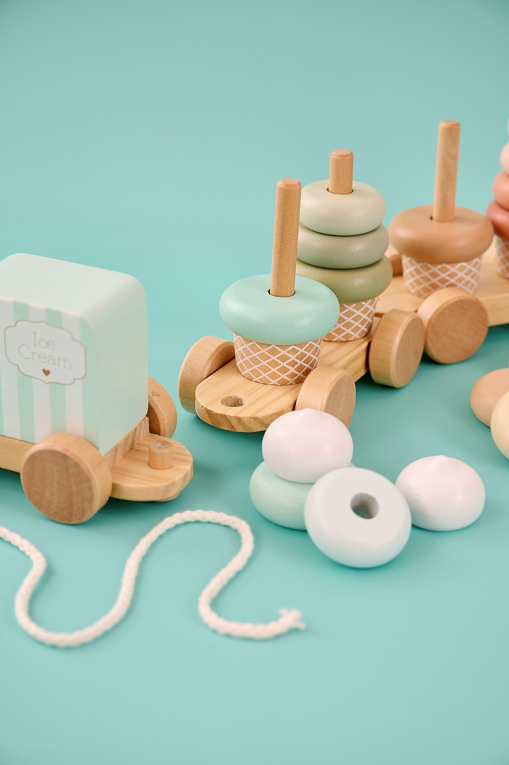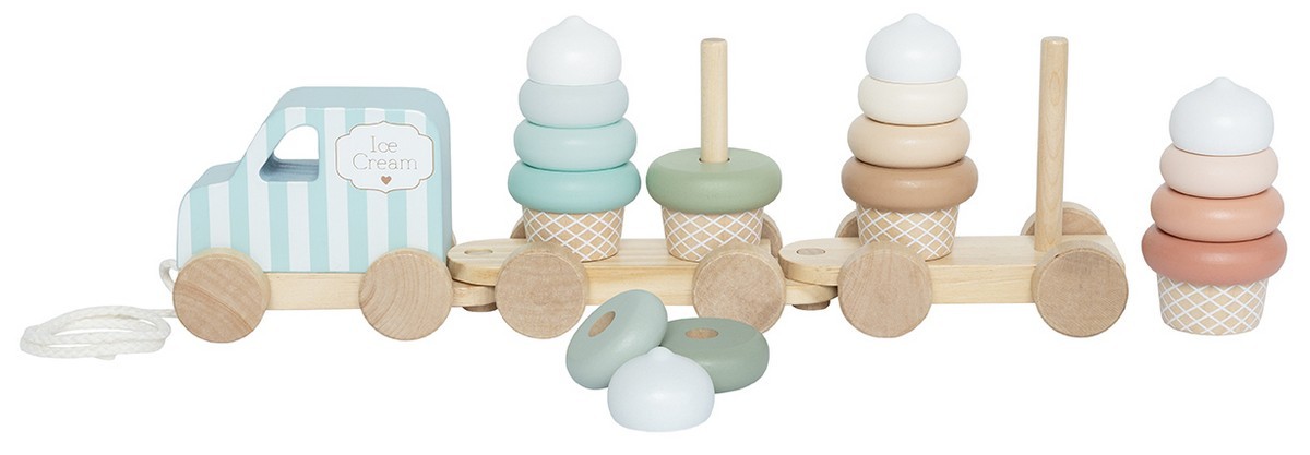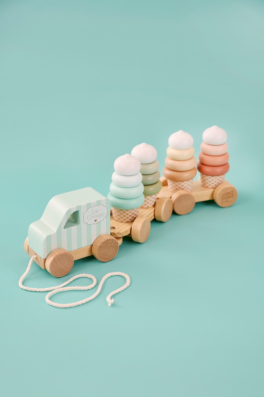 • Obsah balení: 1 tahací vozík, 4 pastelové skládací nanukové kornouty