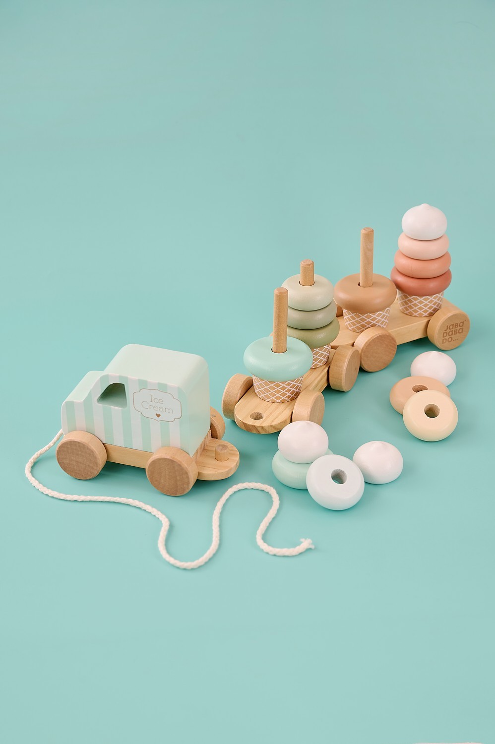 JABADABADO Dřevěný vláček s kostkami Zmrzlina