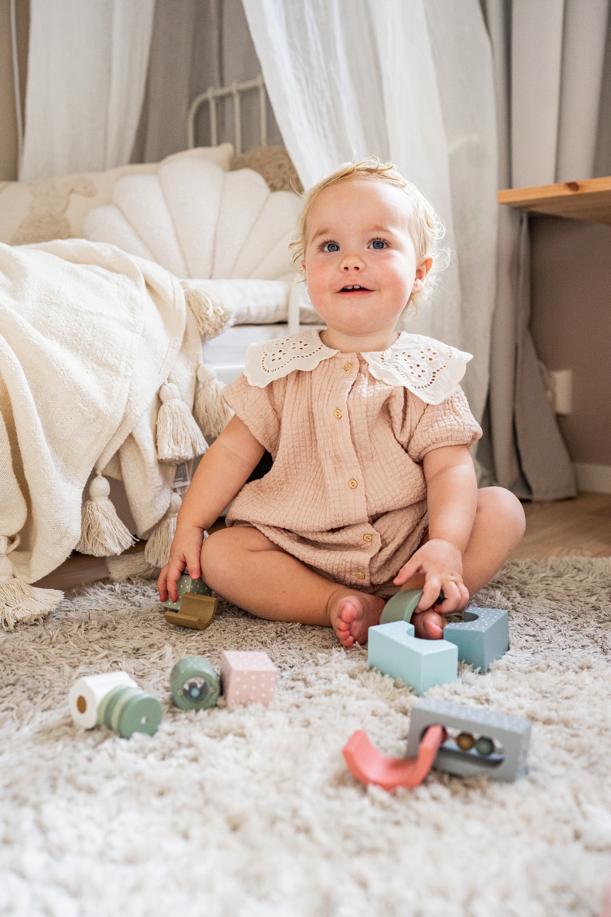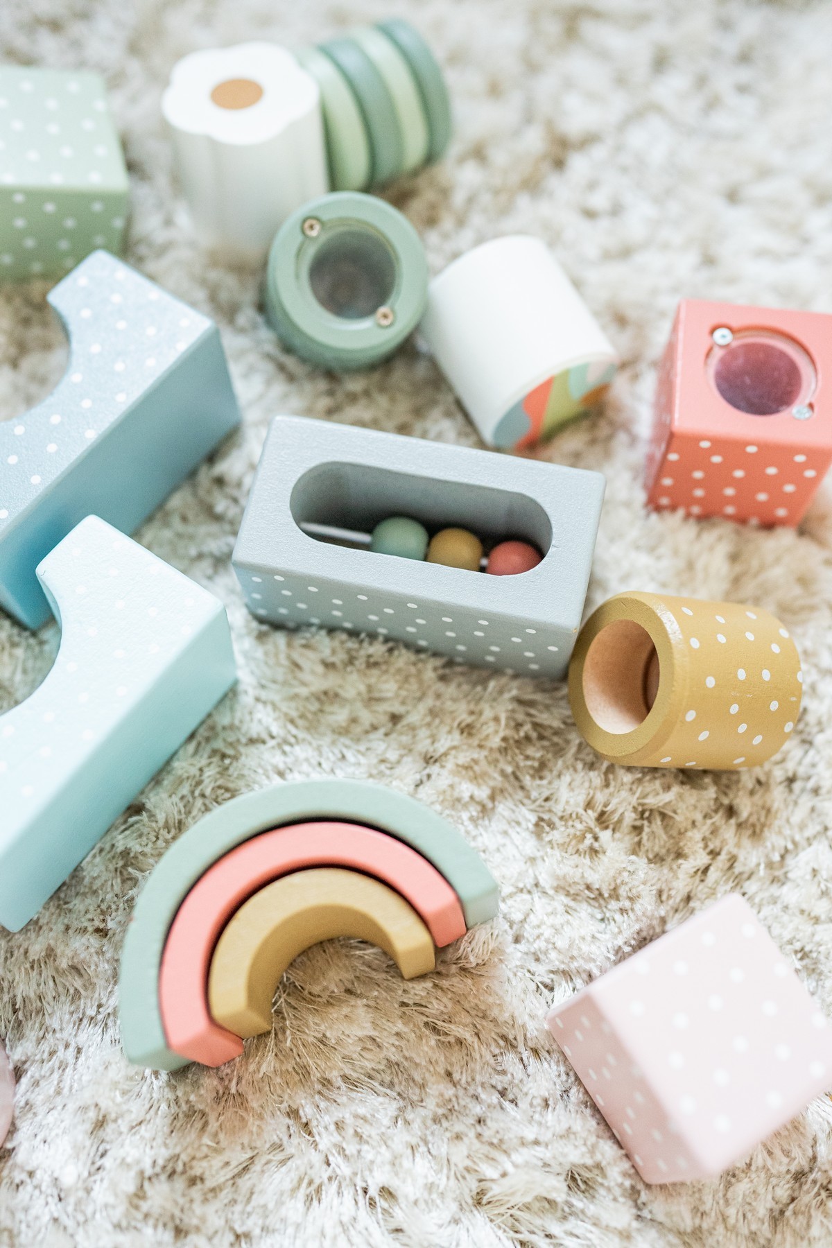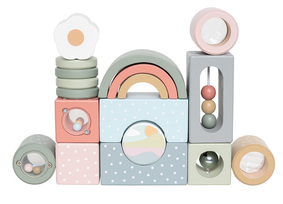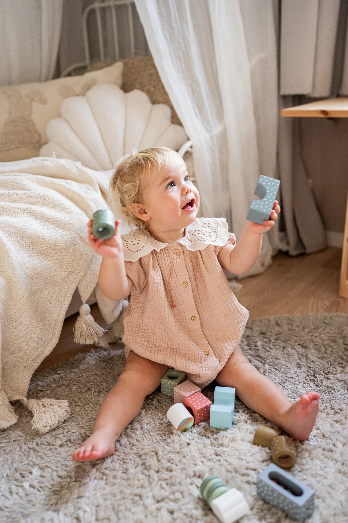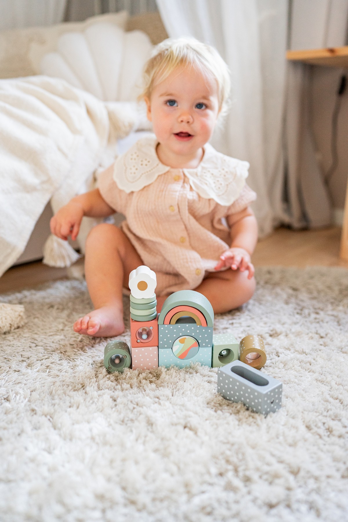• Podporují kreativní hru – stavění věží, objevování zvuků a experimentování s tvary