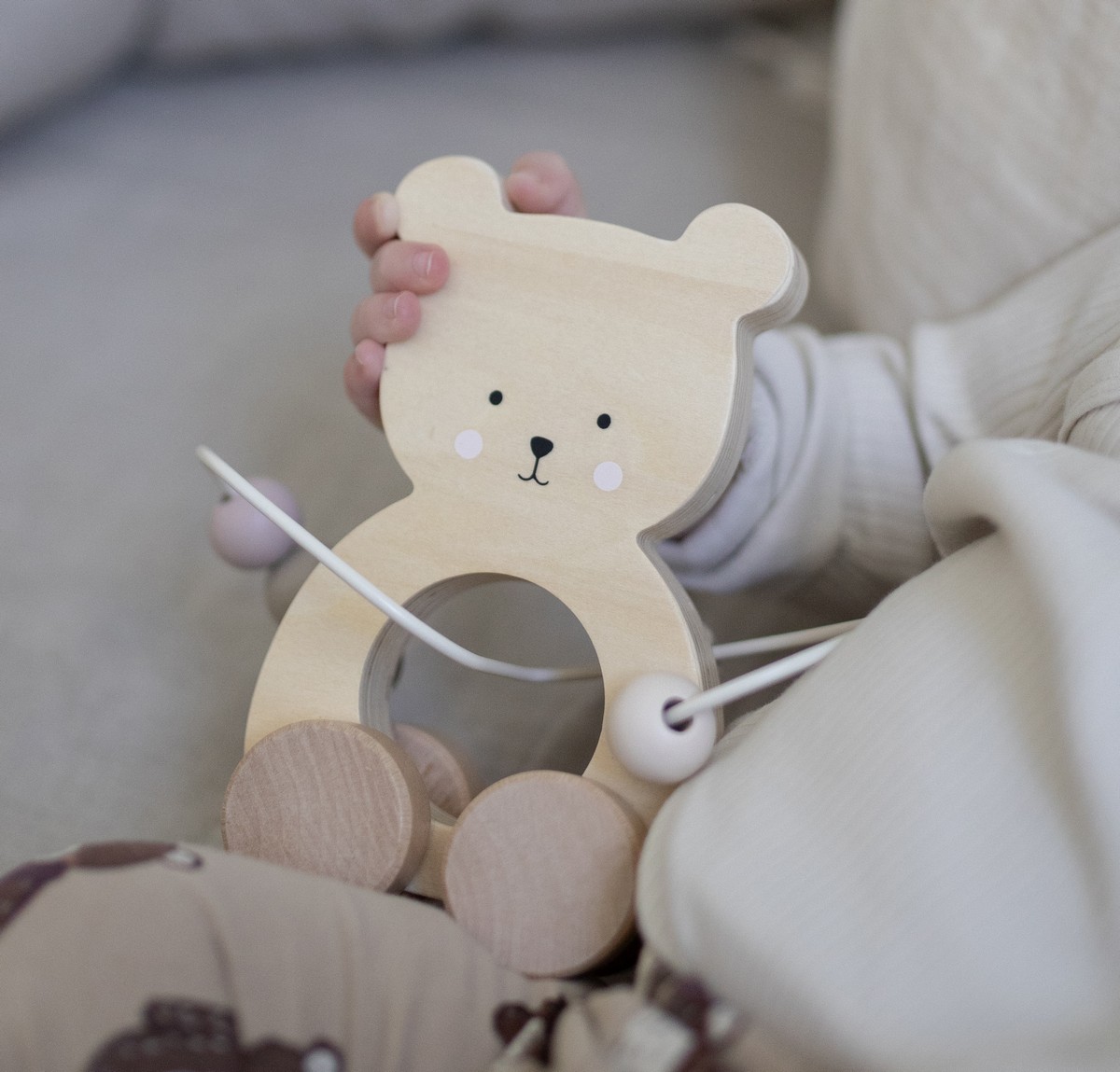 • Roztomilé interaktivní zvířátko s kovovými smyčkami a barevnými dřevěnými korálky