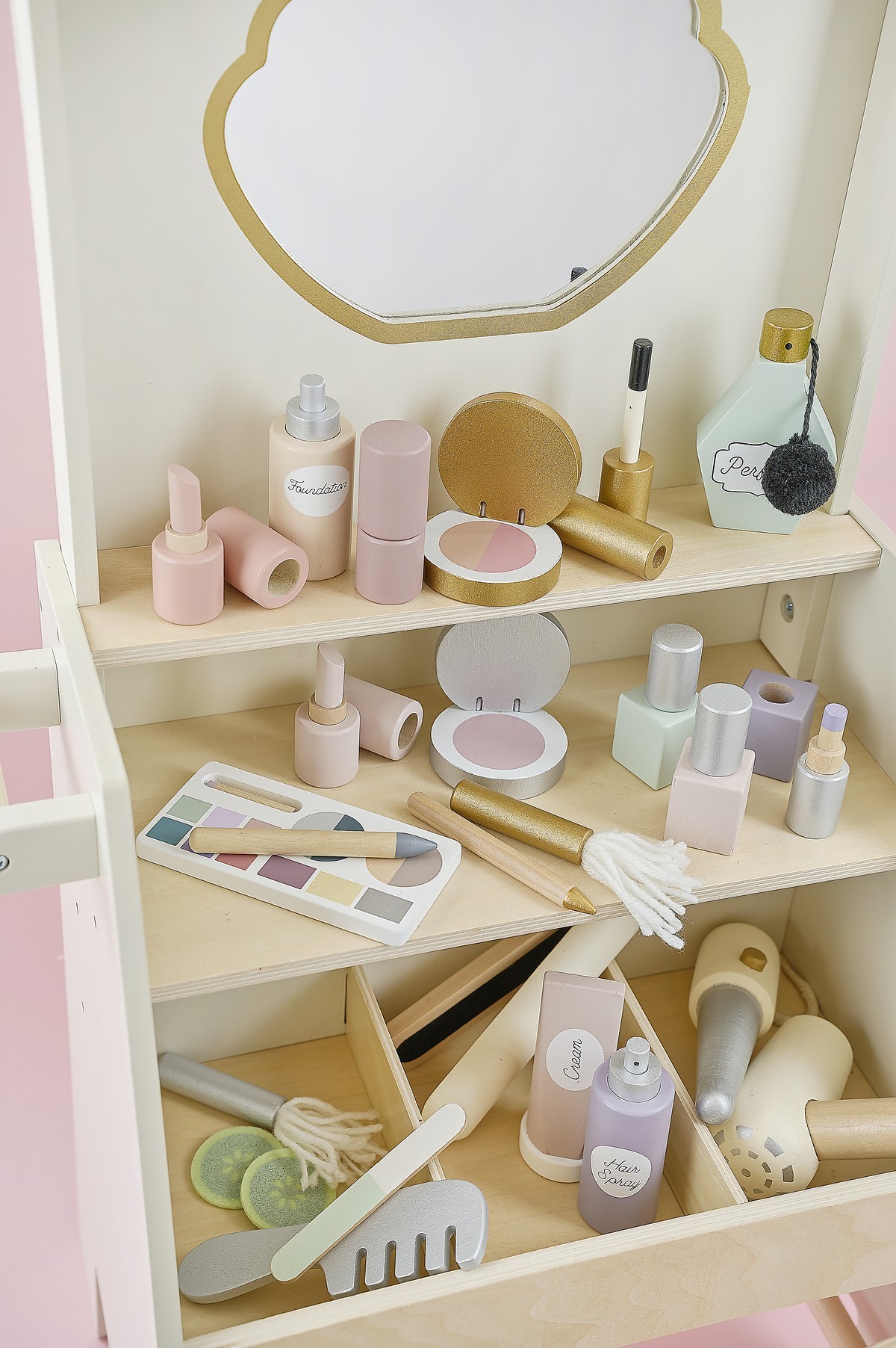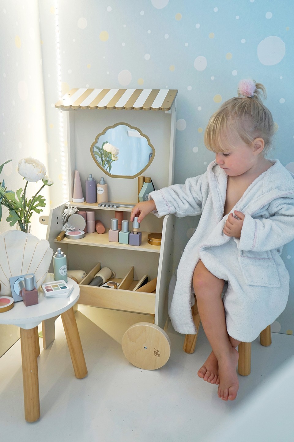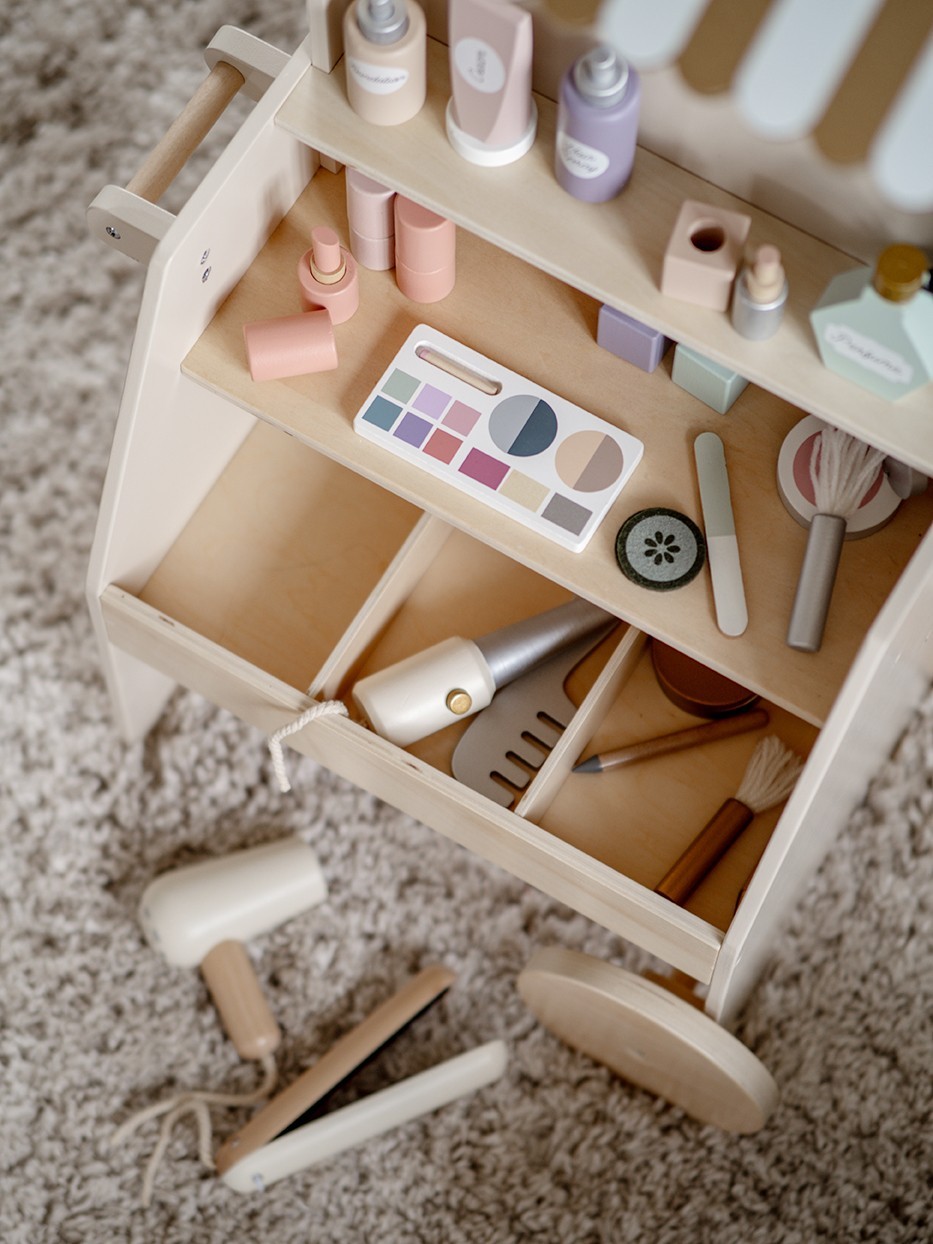 • Kompletní dřevěný beauty salon pro domácí hraní – vše potřebné k vytvoření vlastního salonu