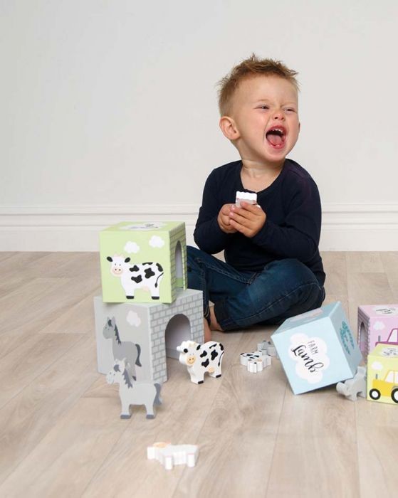• Součástí jsou i malá dřevěná zvířátka: 2 kravičky, 2 koníci, 2 prasátka, 2 ovečky, pejsek a kočička
