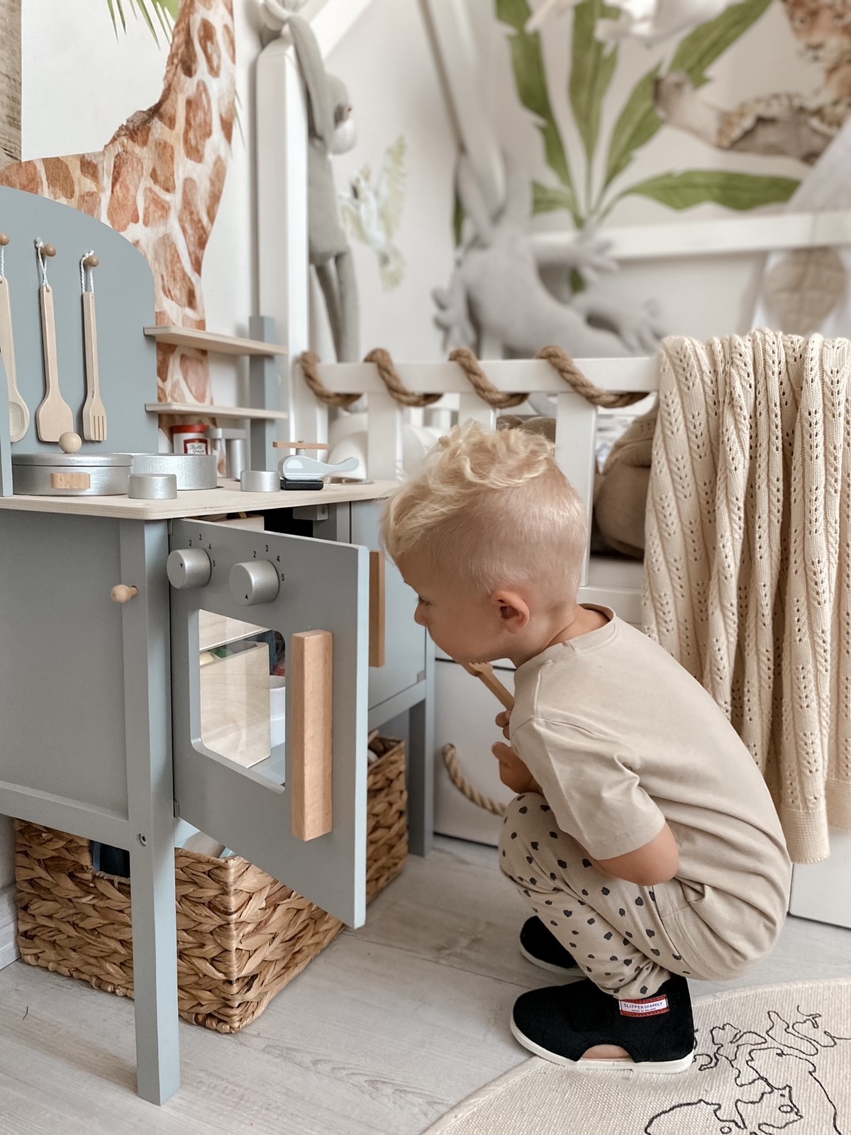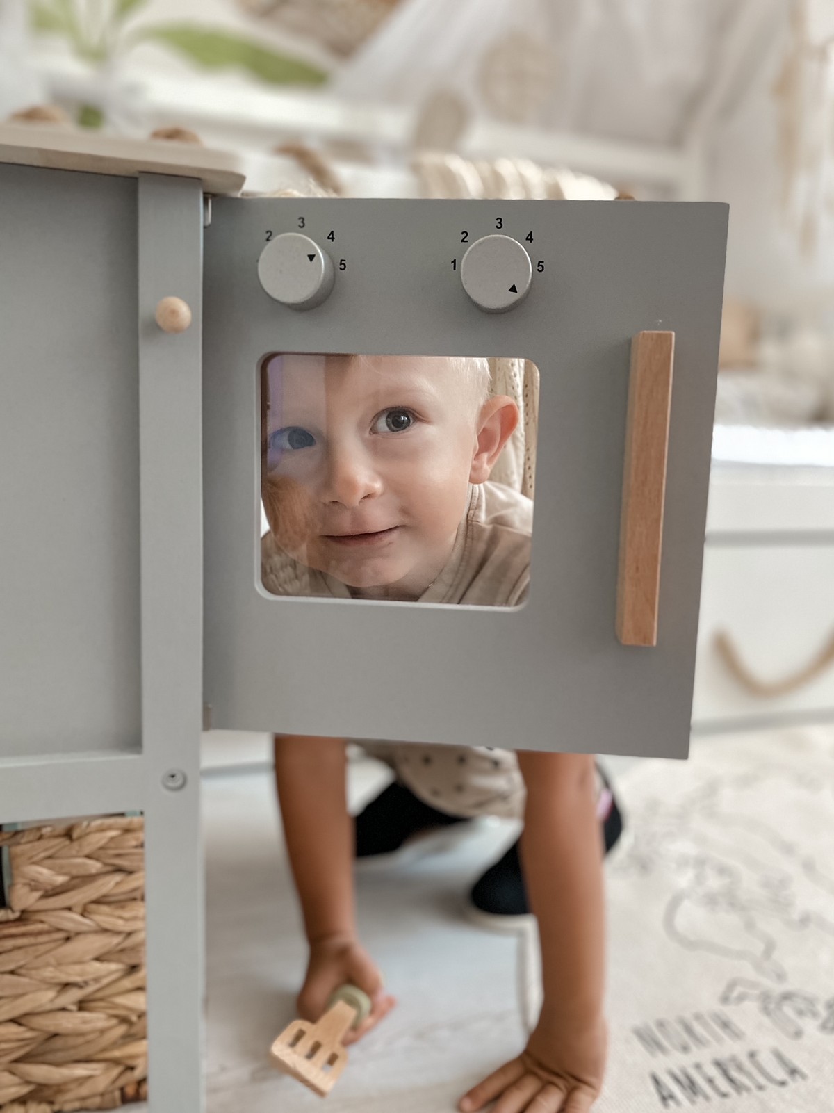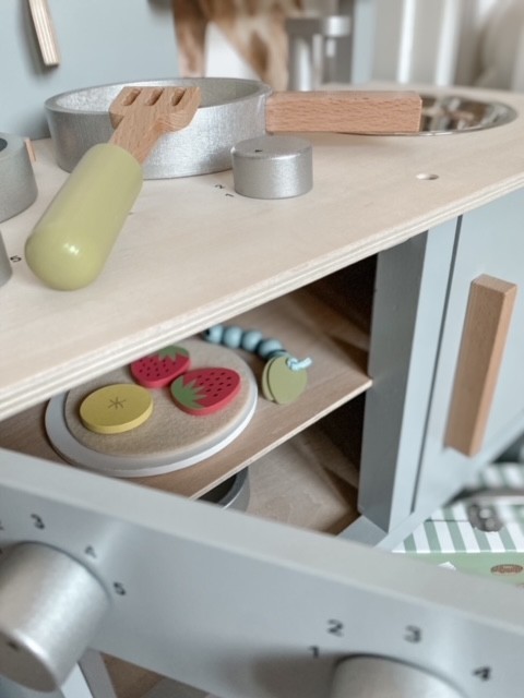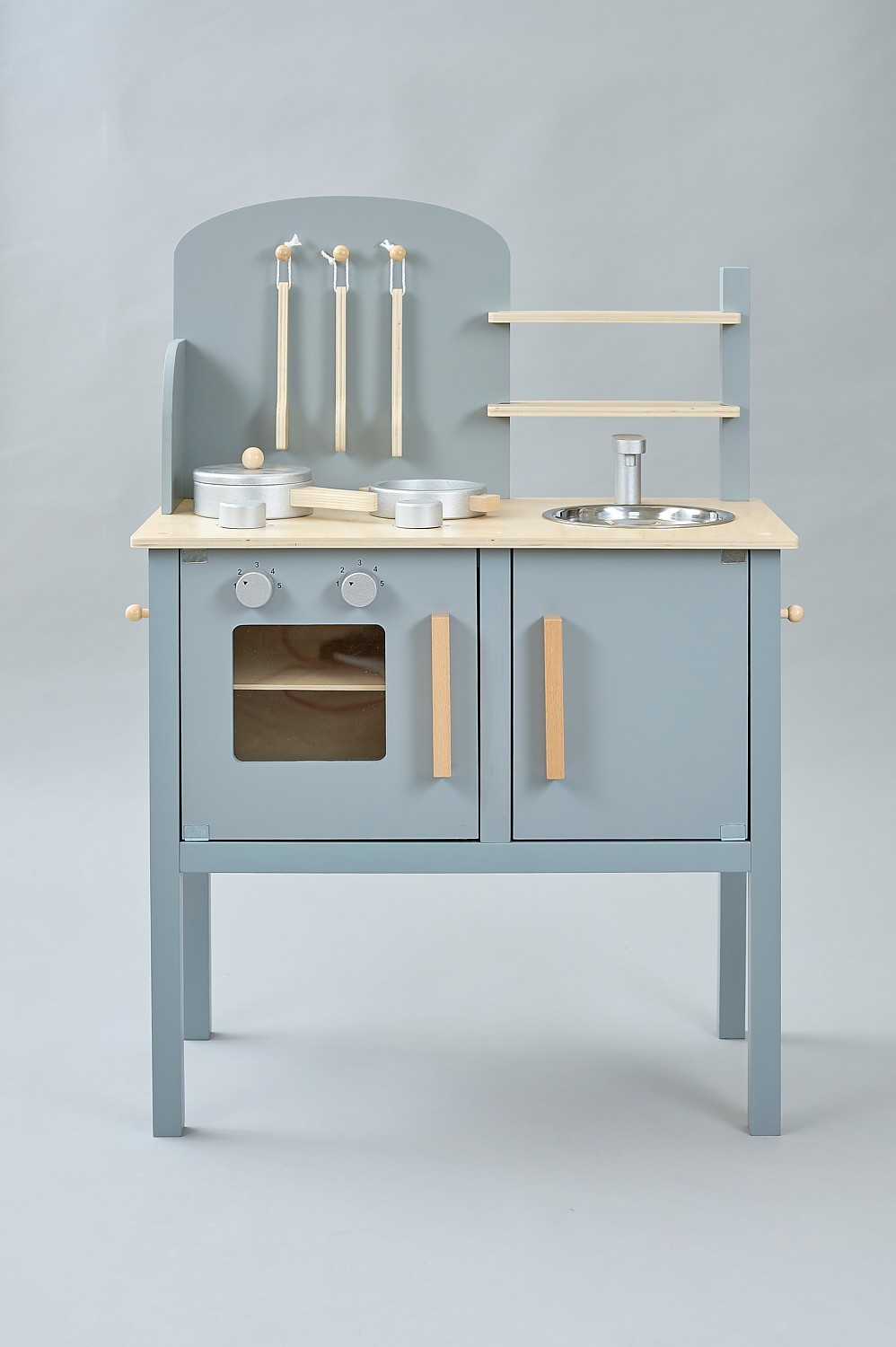 • Obsahuje spoustu hravých detailů: dřez, sporák, troubu, stejně jako hrnec, pánev a tři kuchyňské nástroje