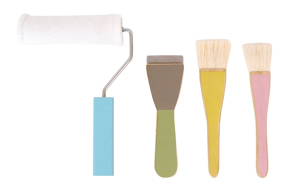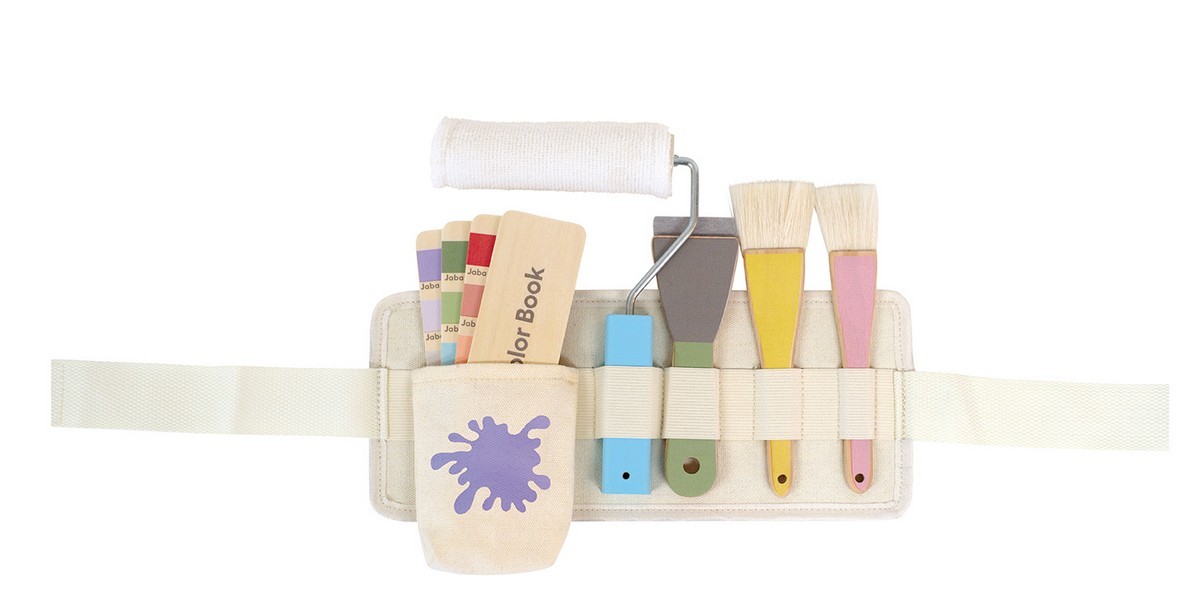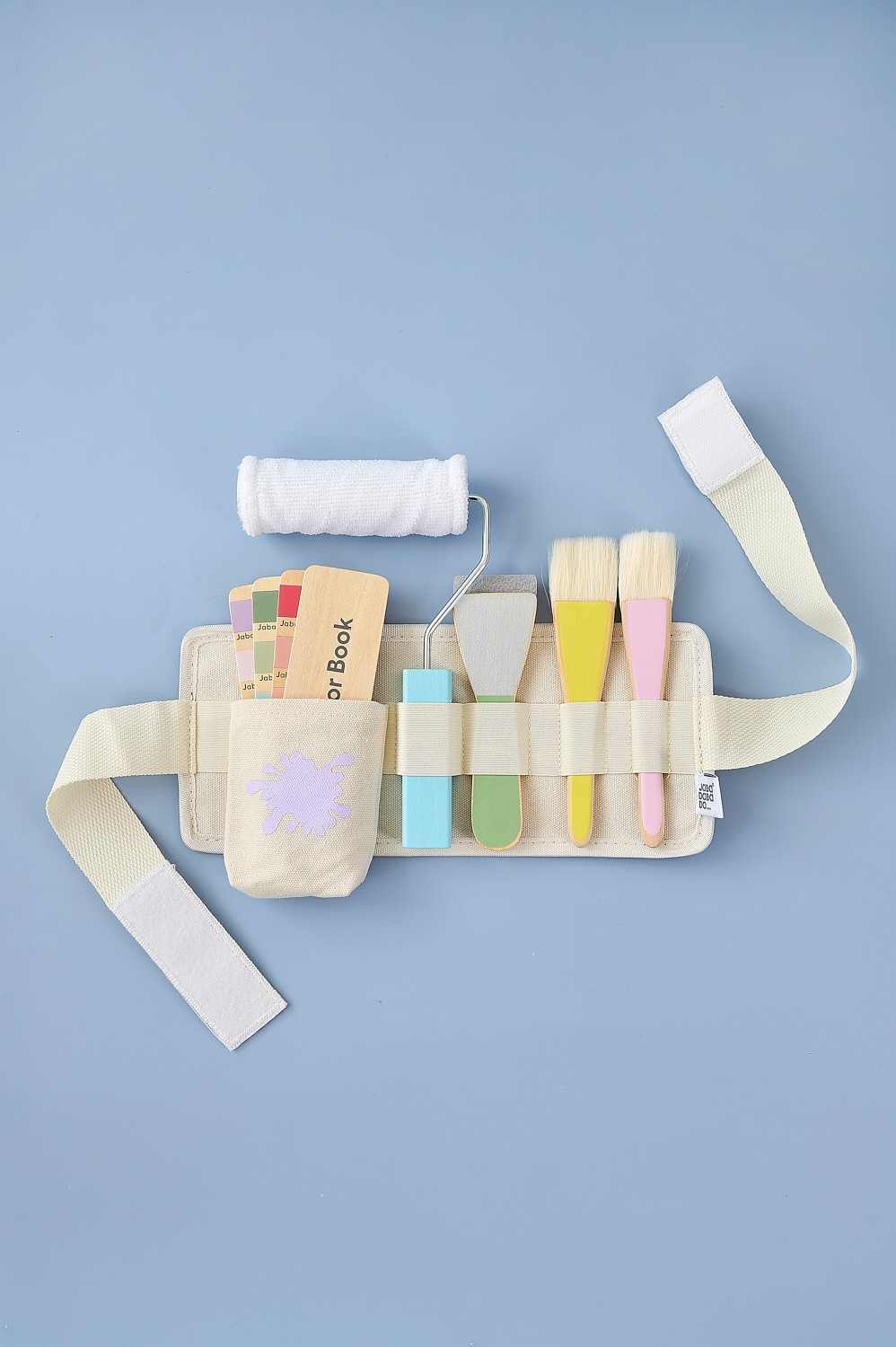 • Praktický pásek obsahující vše potřebné pro malířskou činnost – štětce, malířský váleček, špachtle a barevnou paletu