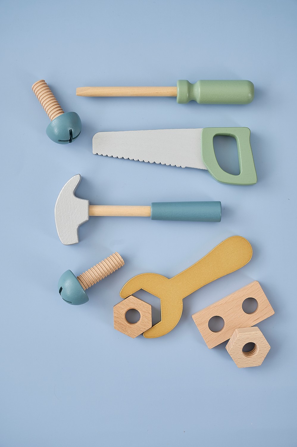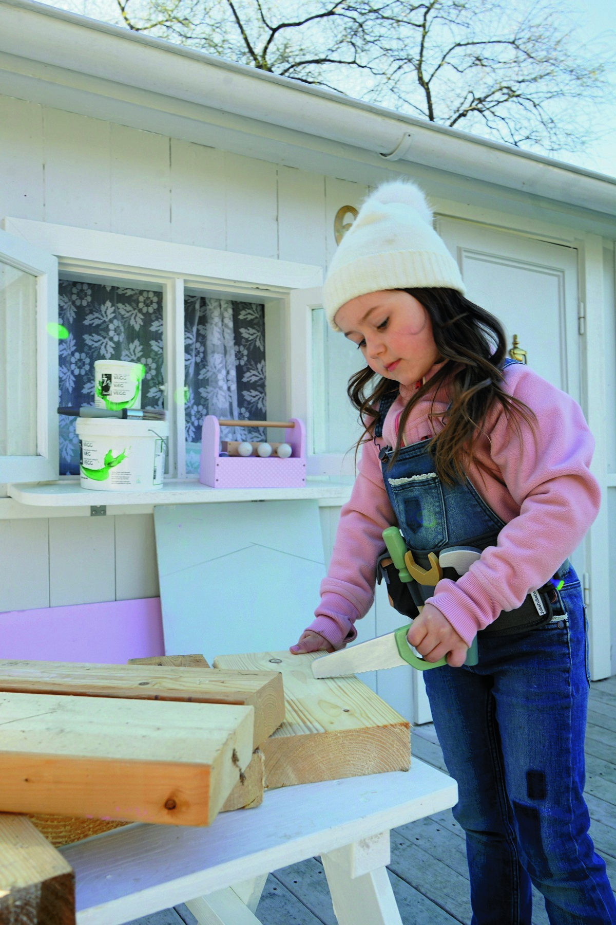 • Obsahuje vše potřebné k „montování“ a hraní na tesaře – hřebíky, kladívko a další doplňky