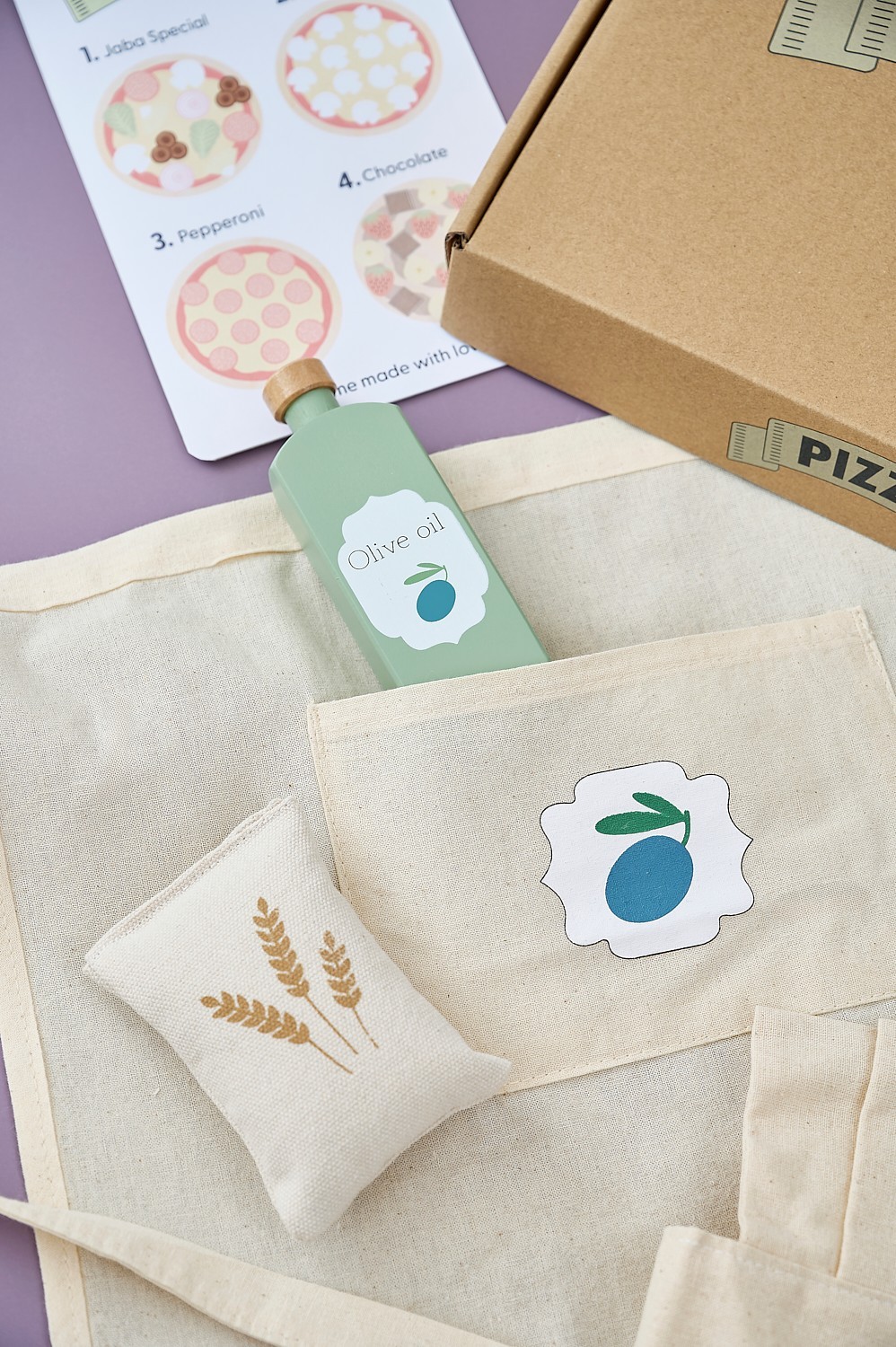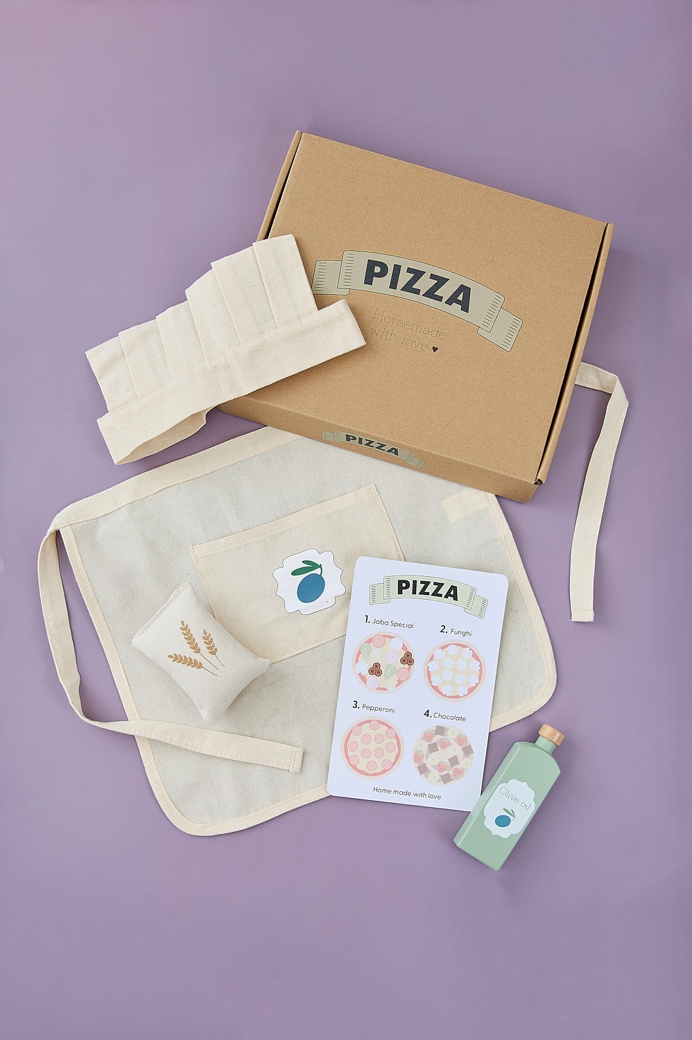 • Obsahuje: kuchařskou čepici, pizzu menu, zástěru, lahvičku olivového oleje a sáček pšeničné mouky