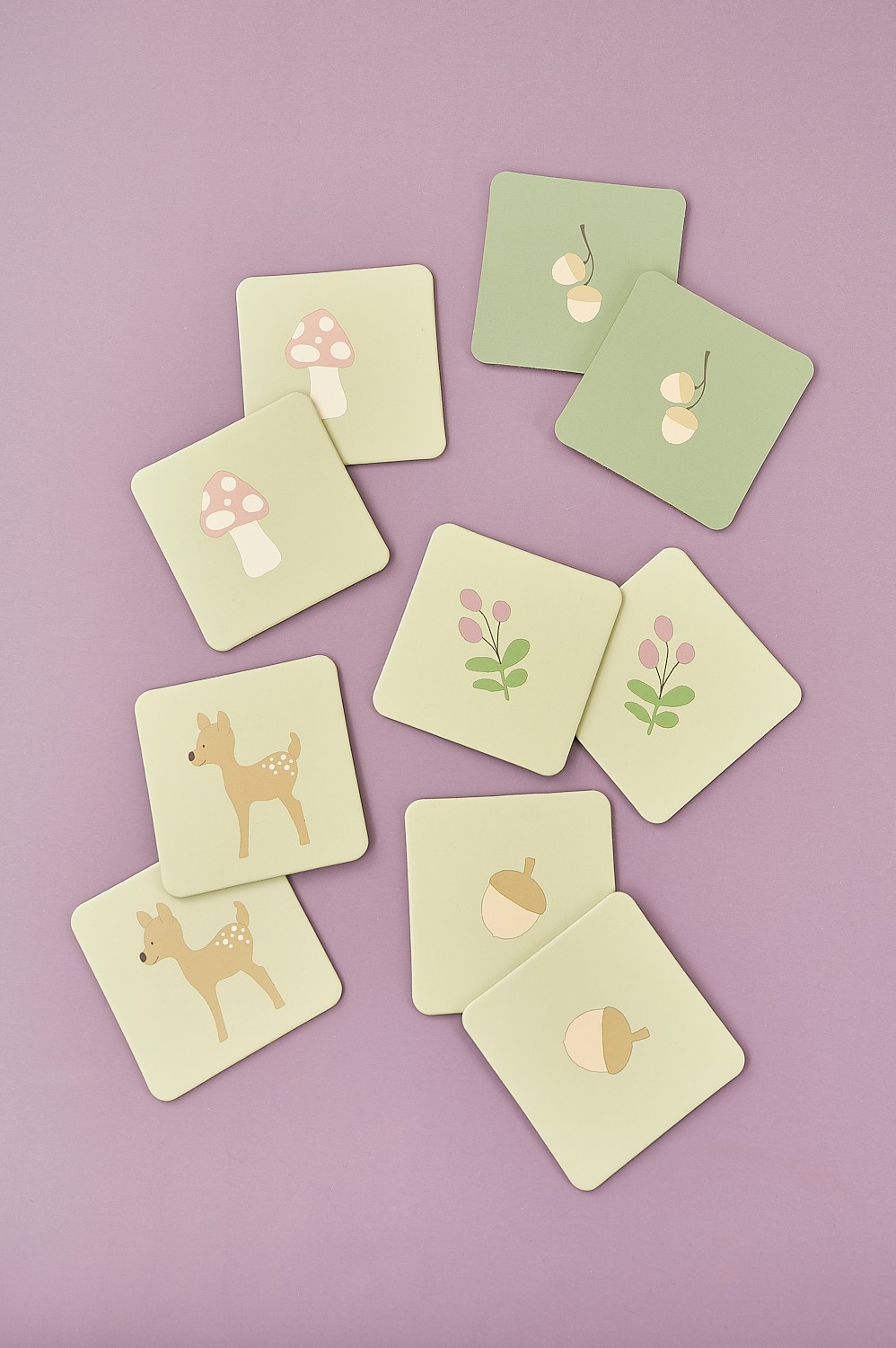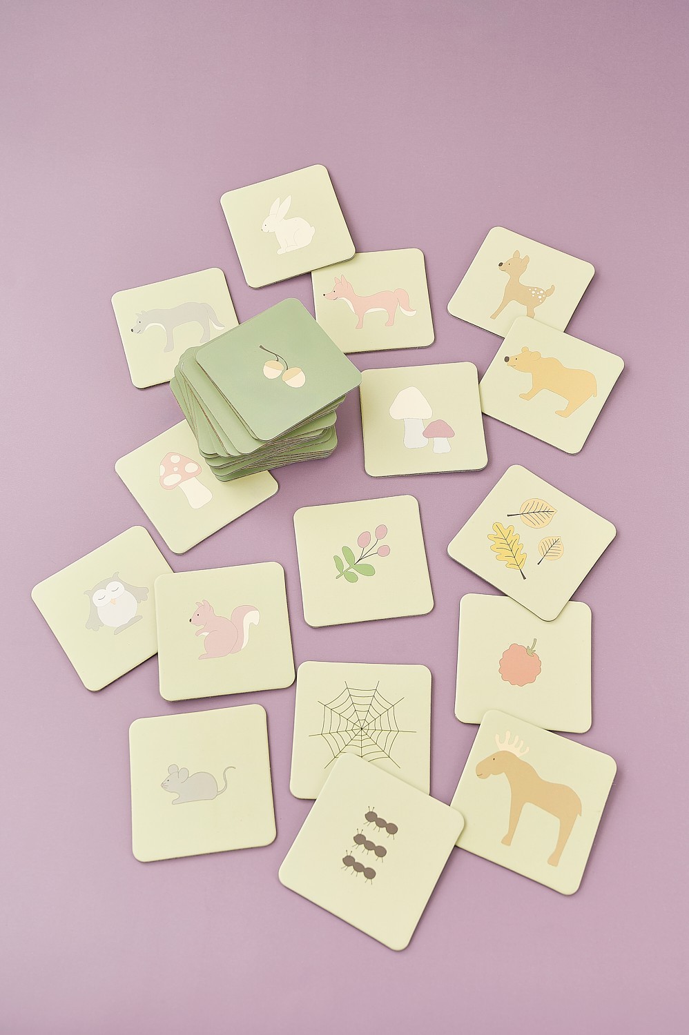 • 48 kartiček s lesními motivy (7 x 7 cm)