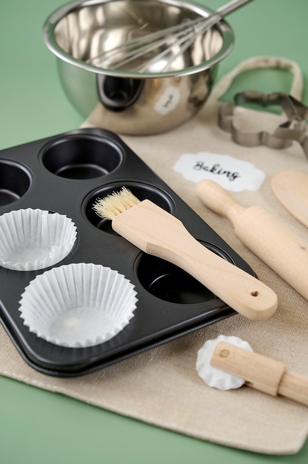 • Obsahuje váleček, misku, metličku a další kuchyňské doplňky