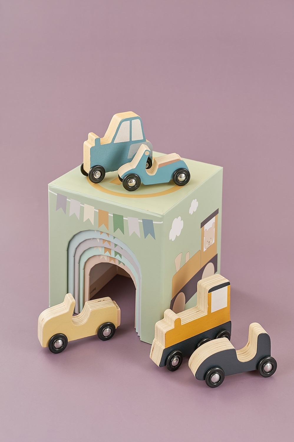 • Obsahuje 1 vlak, 1 jeep, 1 traktor, 1 sportovní auto a 1 skútr