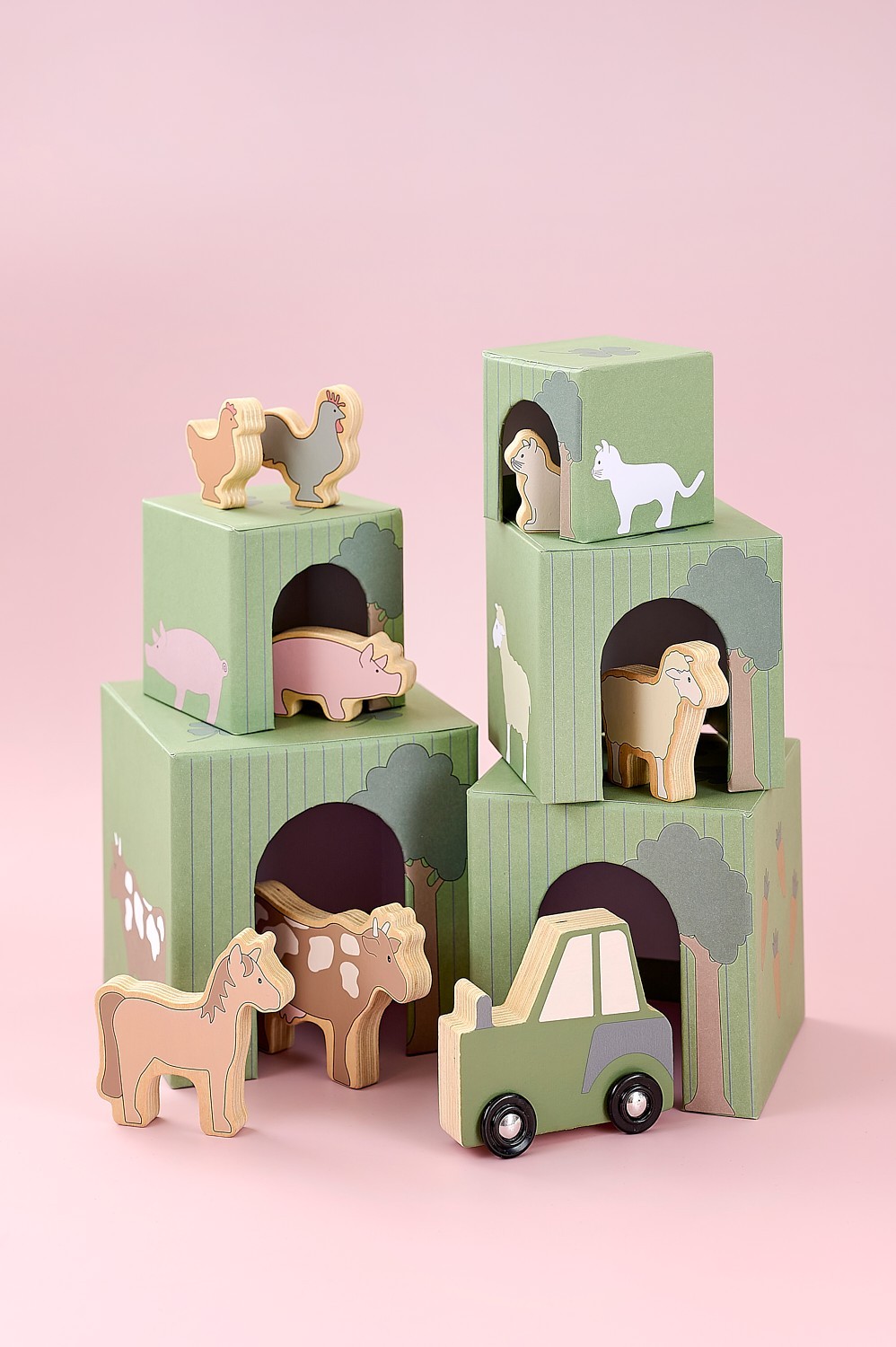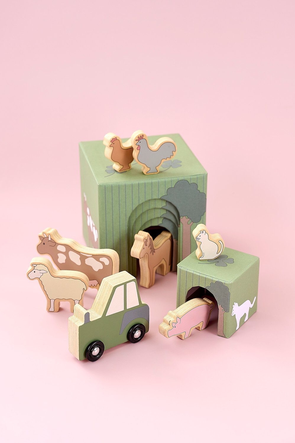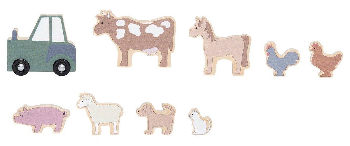 • Obsahuje 2 krávy, 2 koně, 2 prasátka, 2 jehňata, 1 psa a 1 kočku