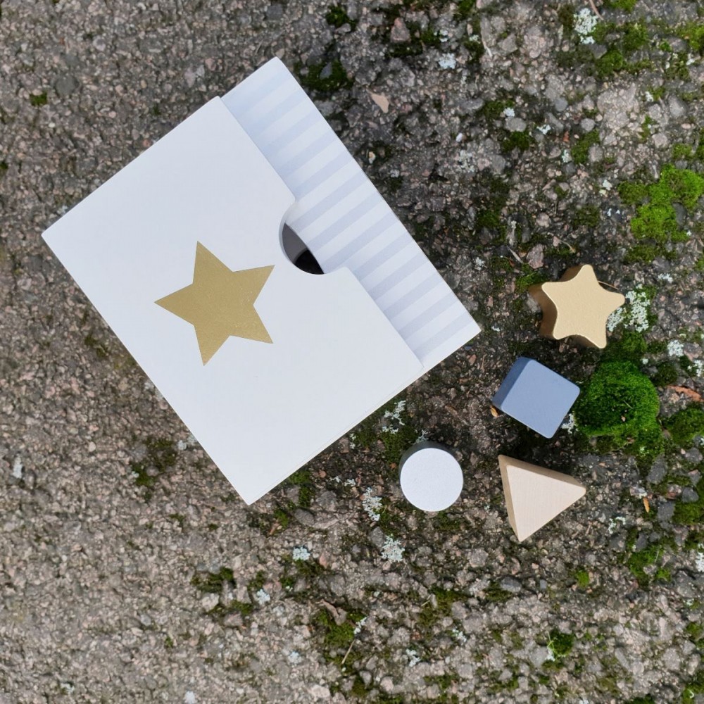 • Box na třídění se čtyřmi tvary: hvězda, květinka, kostka a válec