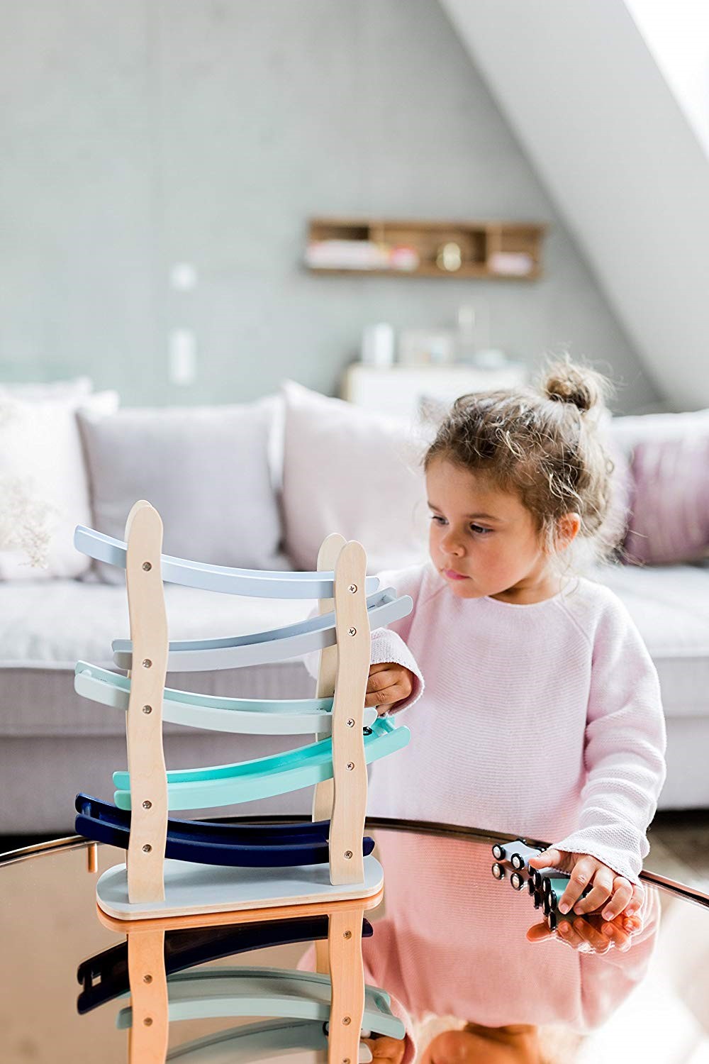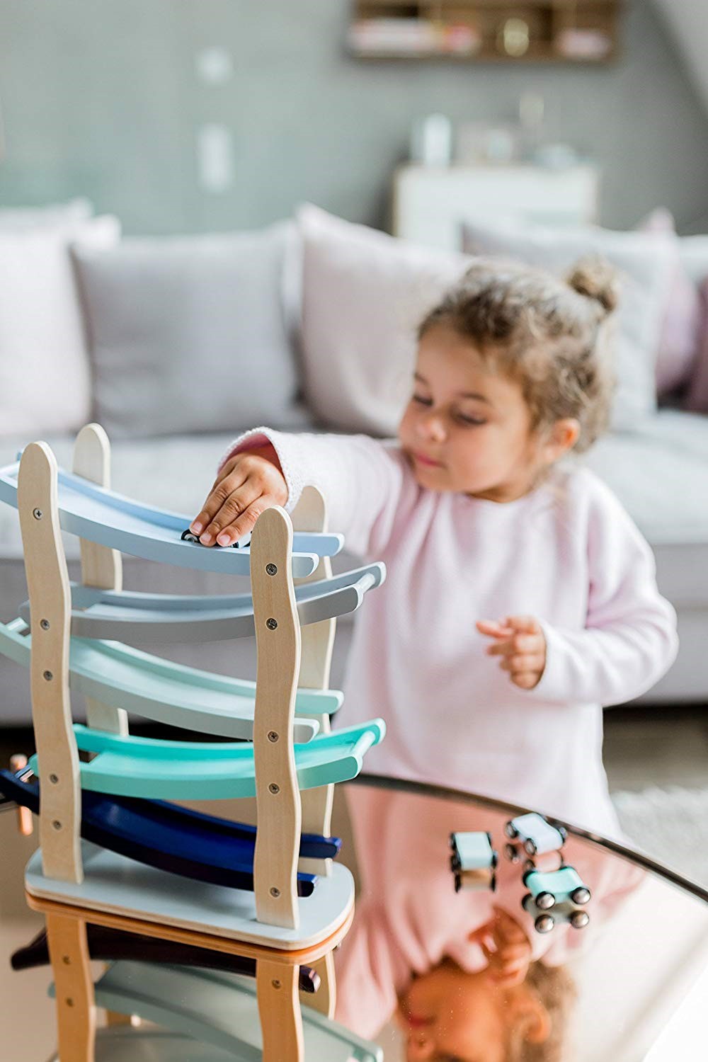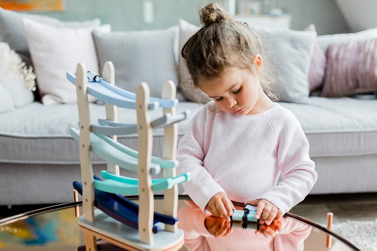Dřevěná závodní dráha s autíčky