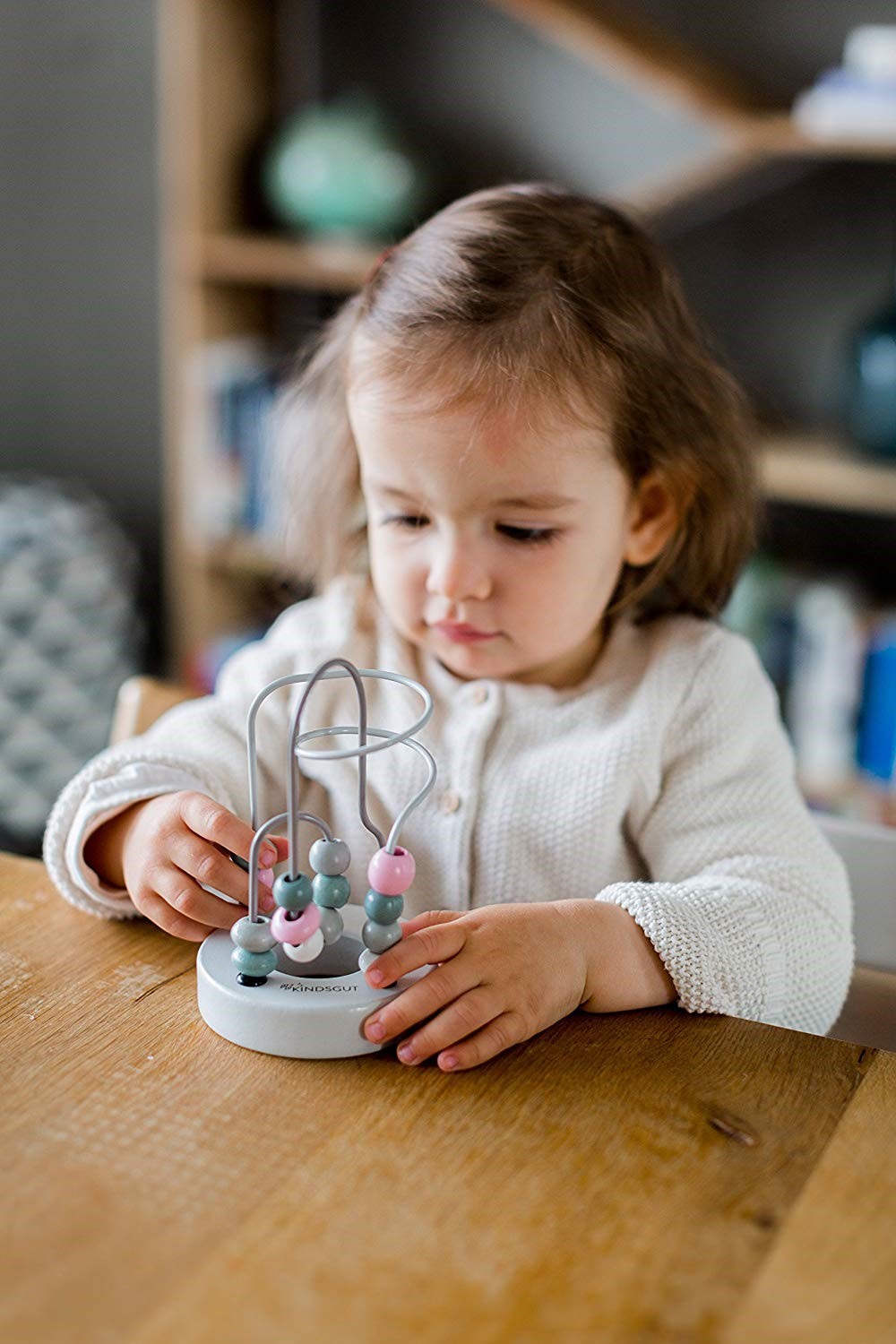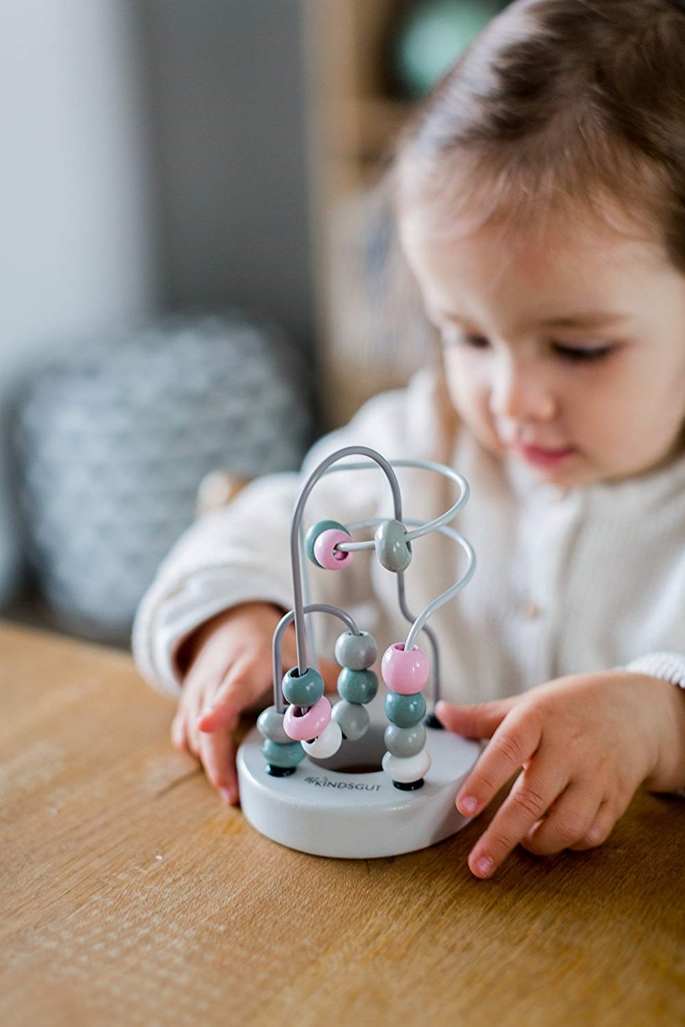 - součástí je dřevěná základna, kovové smyčky a dřevěné korálky