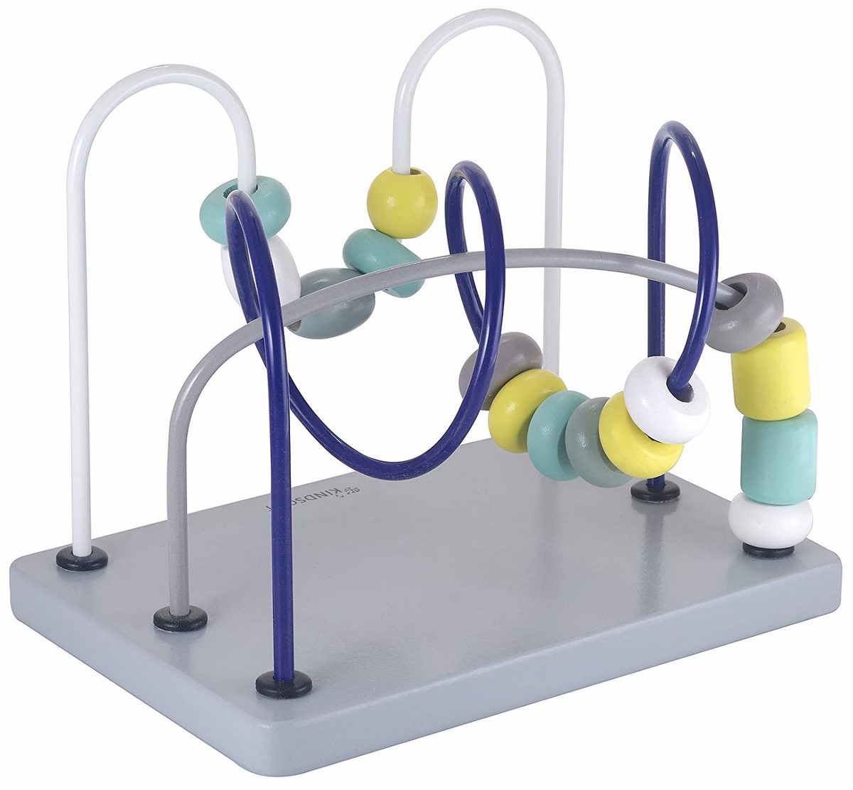• součástí je dřevěná základna, kovové smyčky a dřevěné korálky