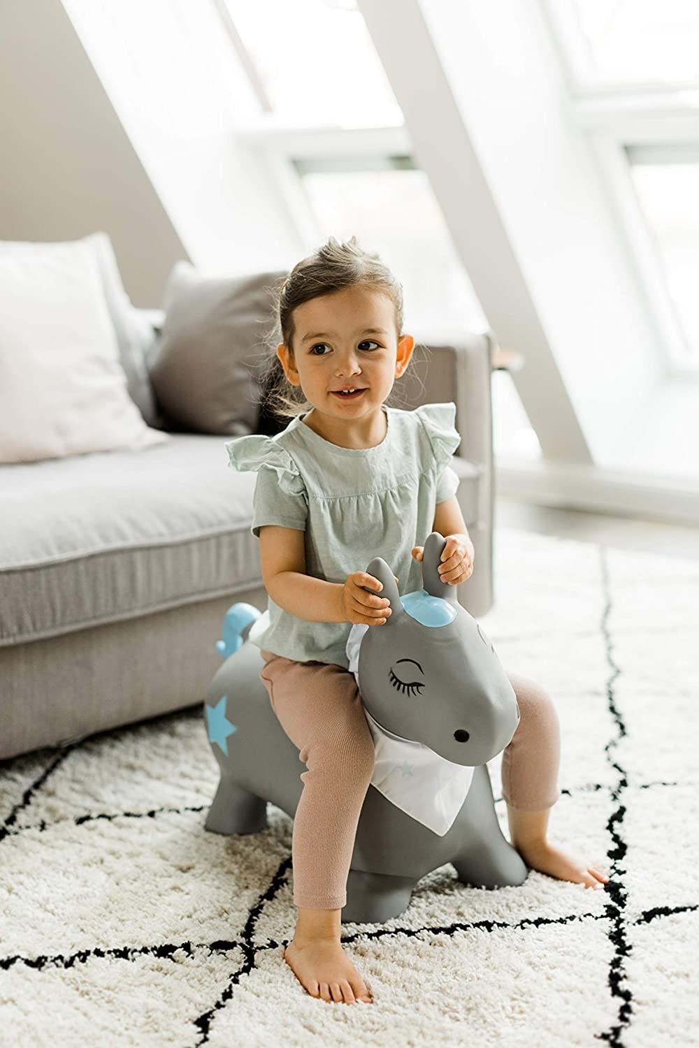 Pro děti od 18 měsíců; výška sedu: cca 25 cm Materiál: ekologický materiál - bez škodlivin Nosnost: max. 50kg Údržba: Omývejte vodou bez chem. přípravků Varování: Před použitím odstraňte všechny části obalu. Nikdy nenechávajte dítě na hopsadle bez dozoru