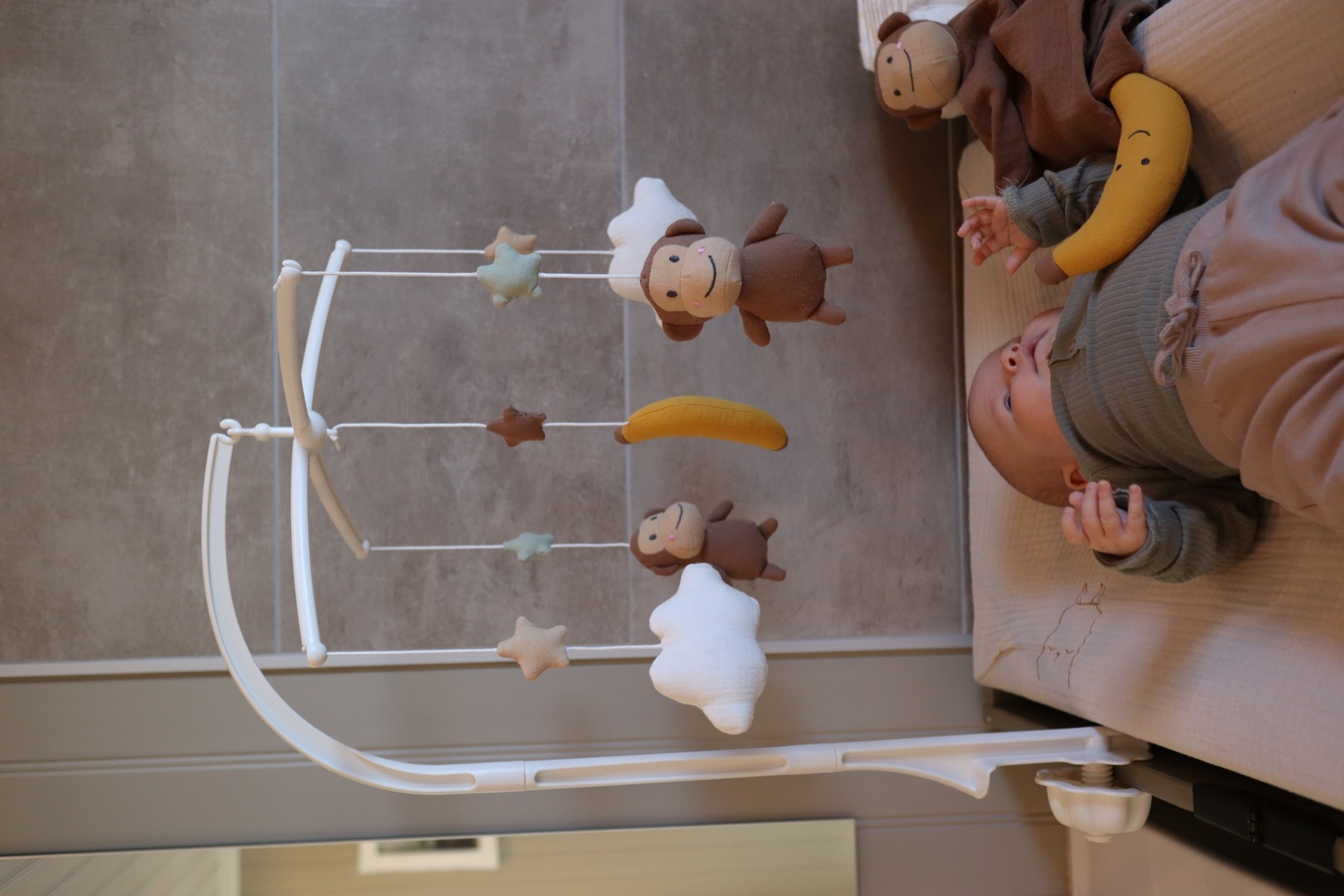 • Roztomilé postavičky – opičky, banán a mraky z měkkých textilních materiálů
