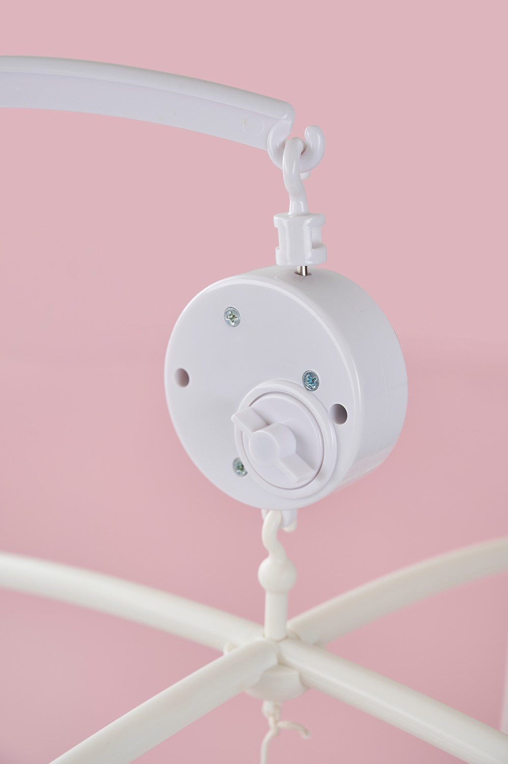 • Připevnění nad postýlku nebo přebalovací pult pomocí přiloženého bílého ramínka (max. šířka 40 mm)