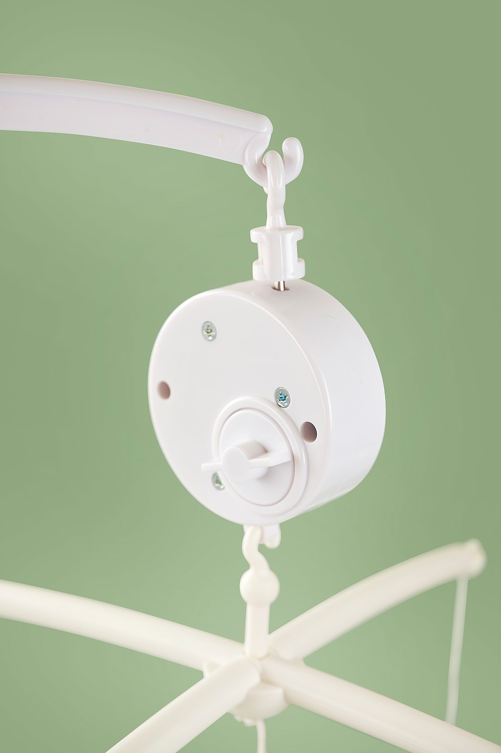 • Připevnění nad postýlku nebo přebalovací pult pomocí přiloženého bílého ramínka (max. šířka 40 mm)