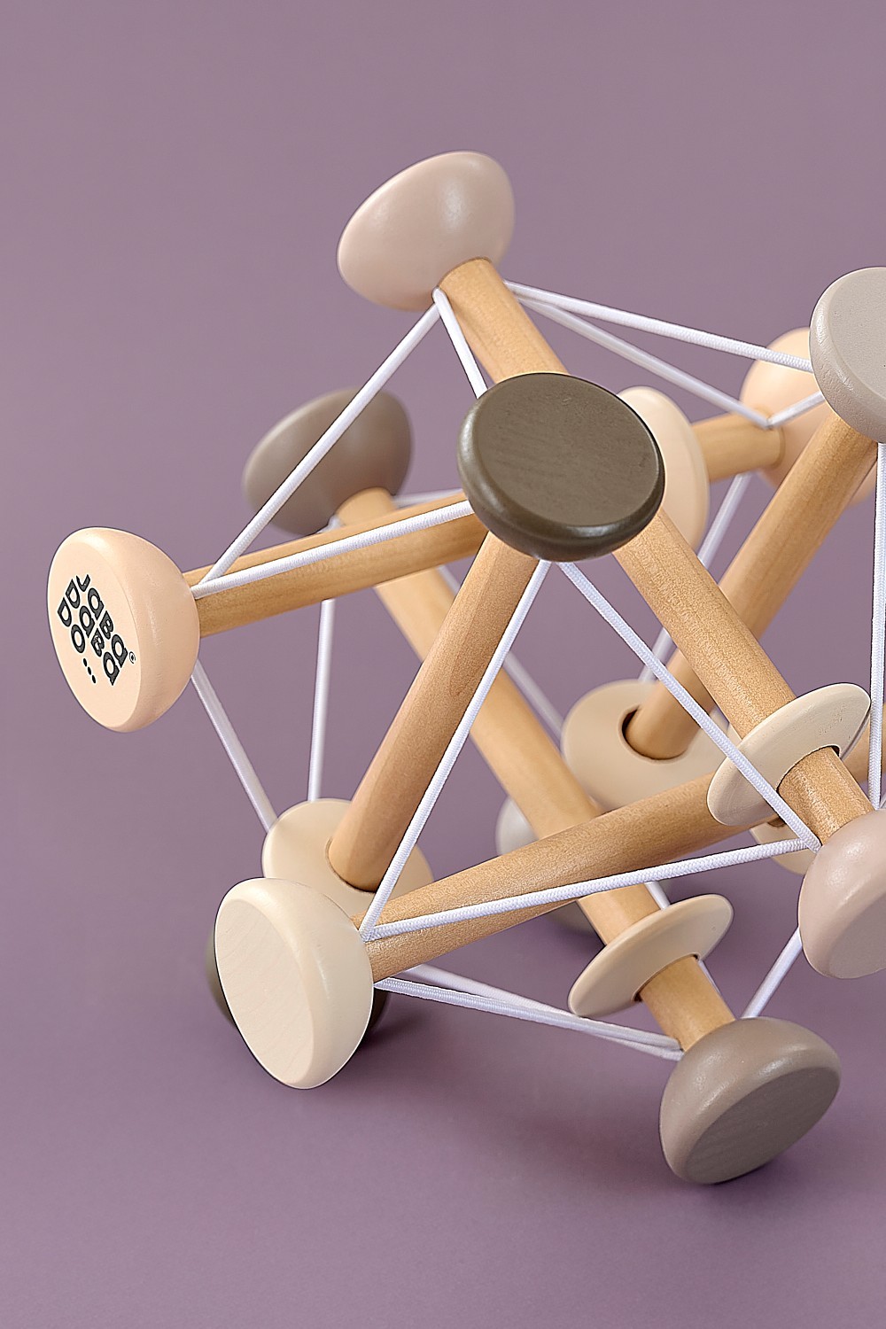 • Měkké gumové pásky s dřevěnými kroužky, které lze otáčet a tahat