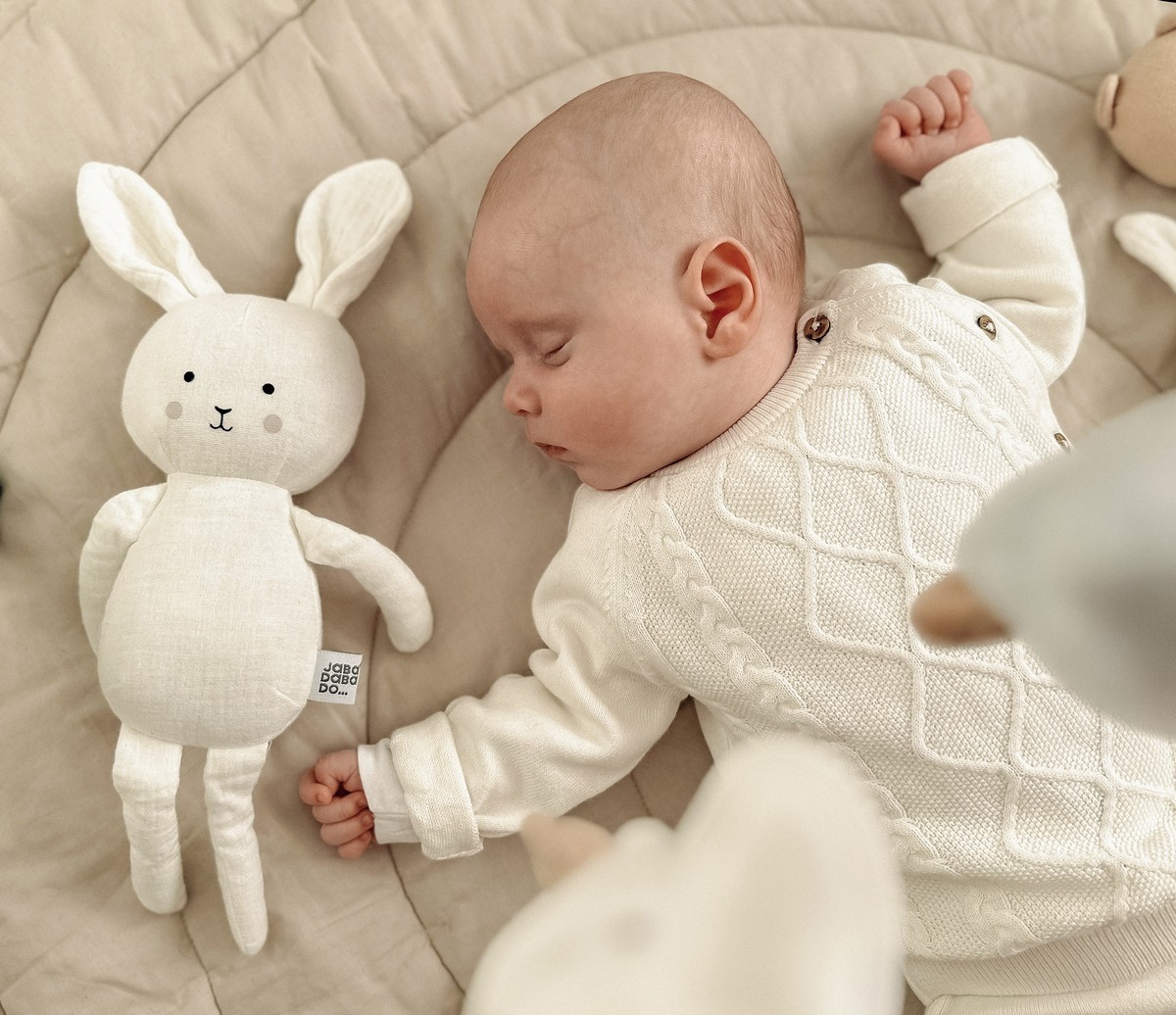 • Roztomilý a hebký plyšový zajíček vhodný k mazlení a uklidnění dítěte