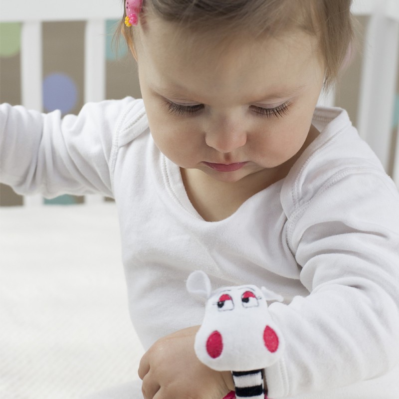 Jemný zvuk chrastítka poskytuje sluchovou stimulaci