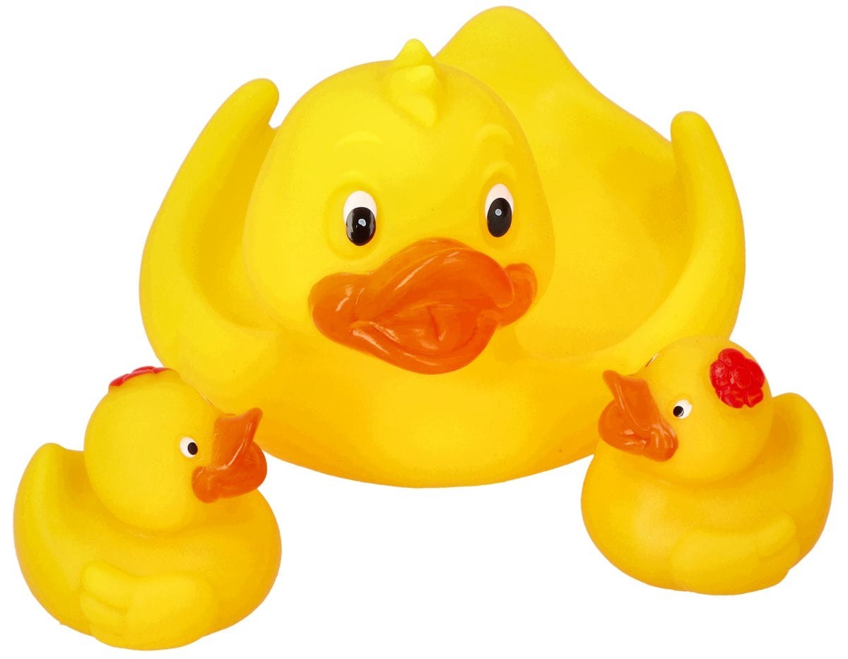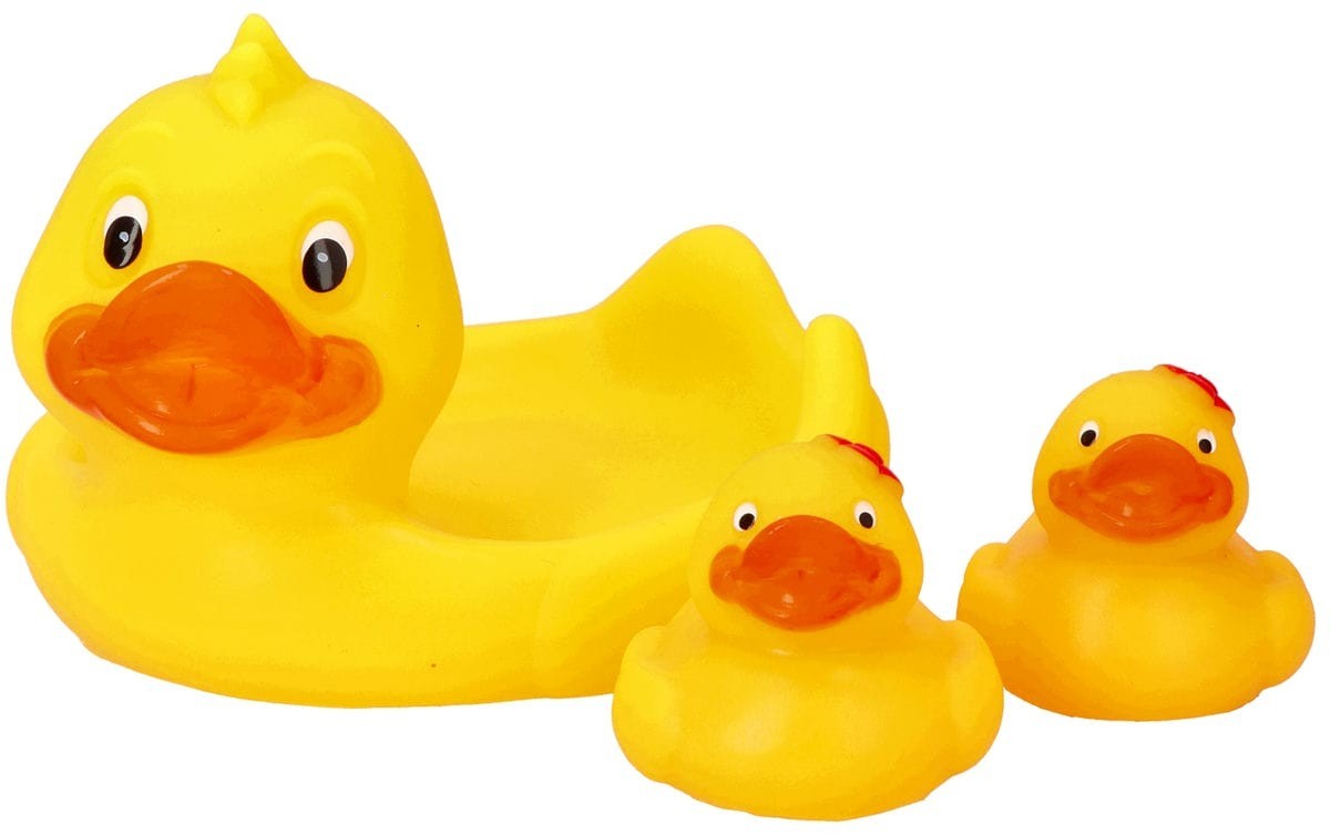 Sada koupacích hraček ve tvaru kachniček (velká kachna + 2 kachňátka)