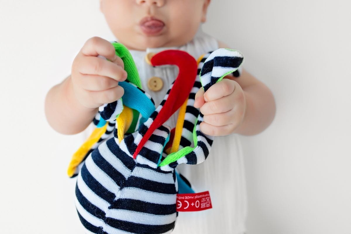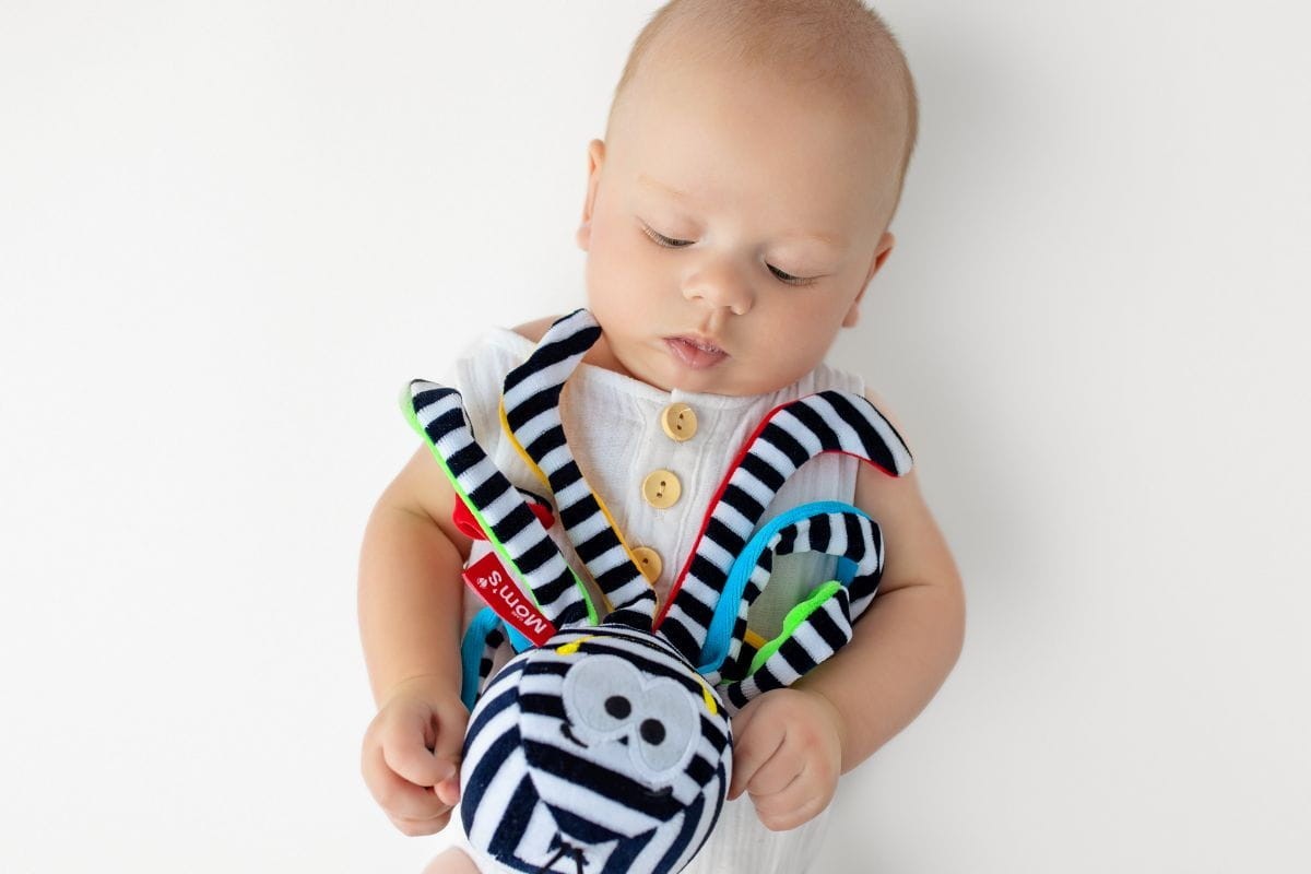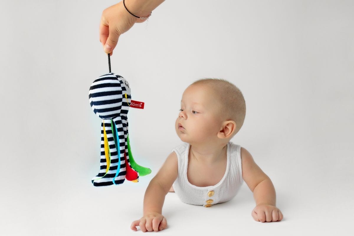 • Vysokokontrastní černobílé prvky podporují vizuální rozvoj a soustředění